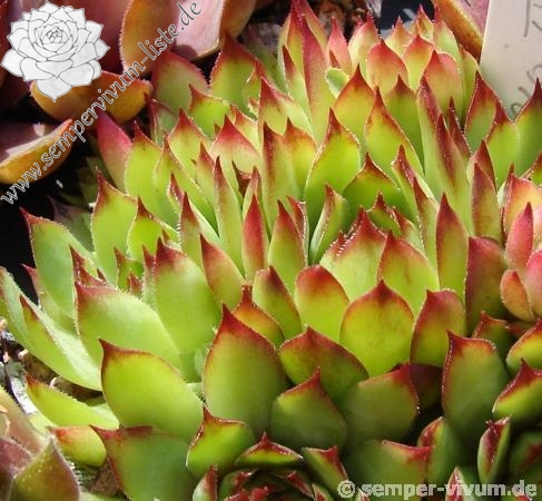 Eine kleinrosettige S. tectorum Form mit orangefarbenen Blattspitzen. Die Auslese aus den Niederlanden wächst sehr kompakt und ist sehr wüchsig.