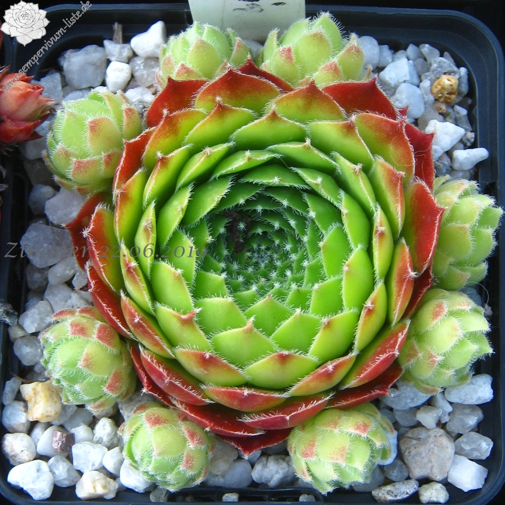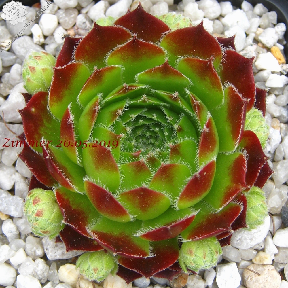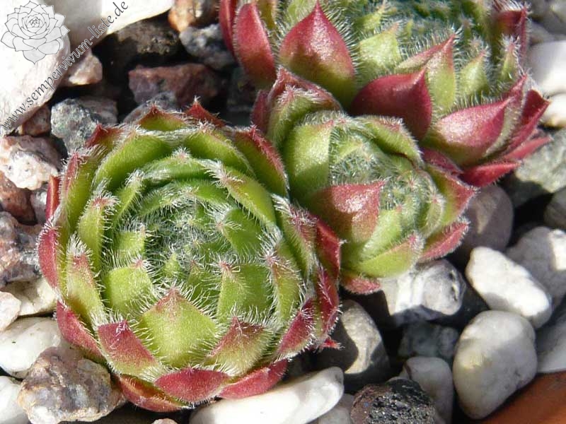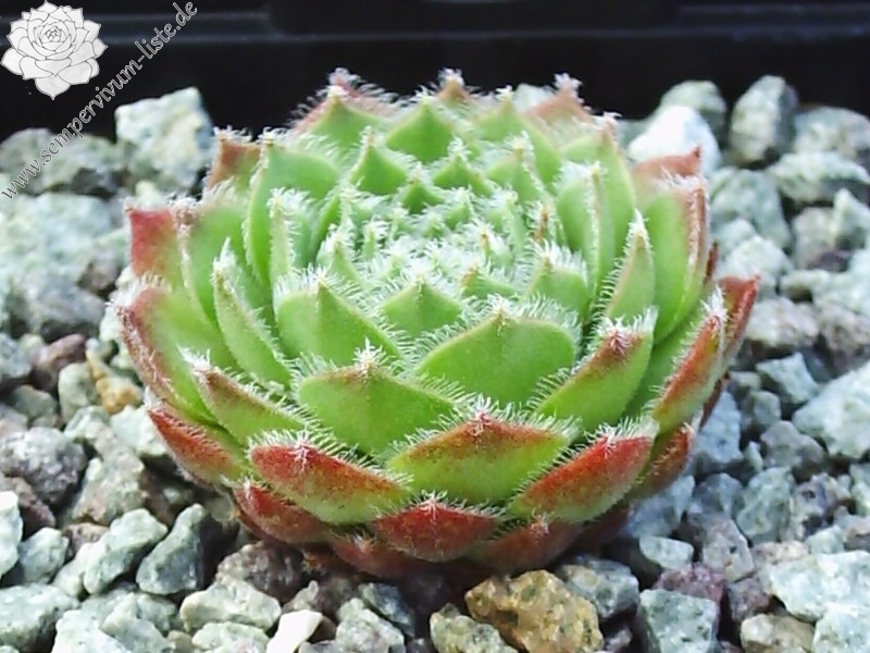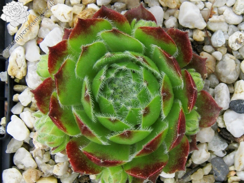 Ros 3 cm, grün, bewimpert, rotbraune Spitzen