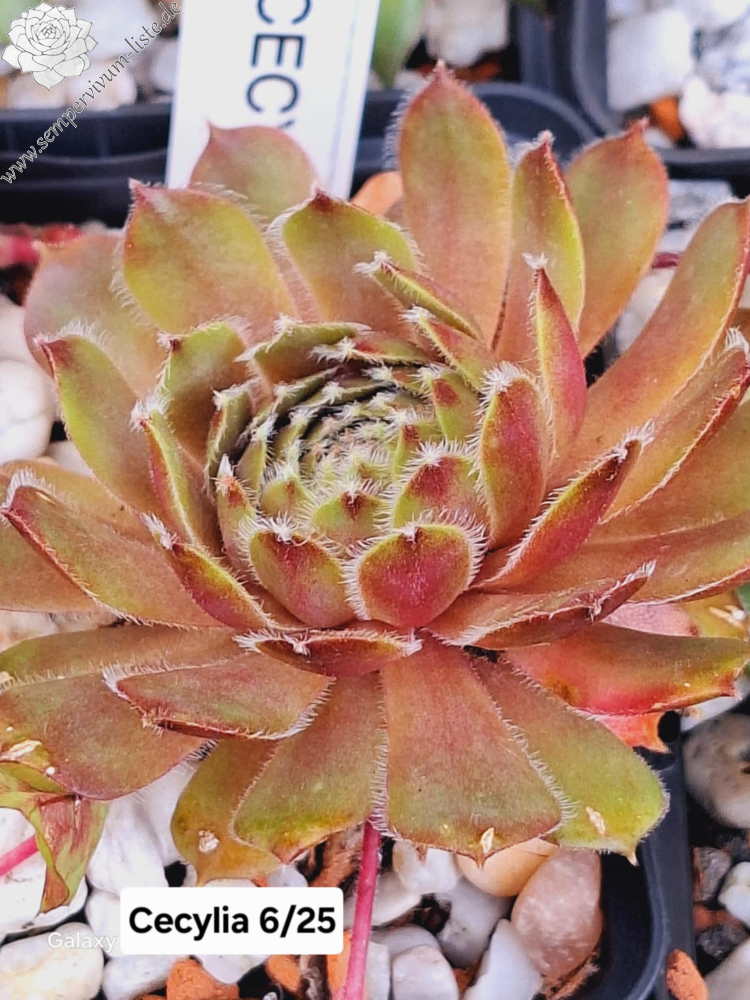 CECYLIA siewka z 2021/23 (rok premiery 2023) matka 'Weberianum'. Kolejna udana siewka z nasion odmiany Weberianum. Rozety dość duże, matowe, lekko owłosione w kolorach, czerwieni i brązu. Rozety osiągają ok 6 cm średnicy.