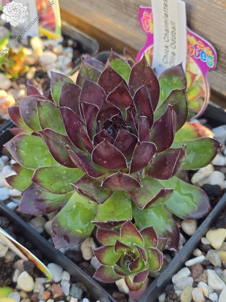 Die Chick Charmletts Serie von "Miniatur Hen & Chicks" sind genauso farbig, kräftig und winterhart wie die Zugehörigen der größeren Sorten, nur kleiner! Diese kleinen Chicks wurden ausgesucht, um klein zu bleiben und gedeihen gut in engen Gefäßen.