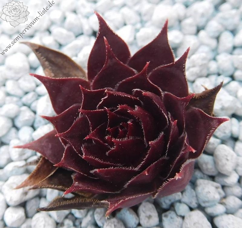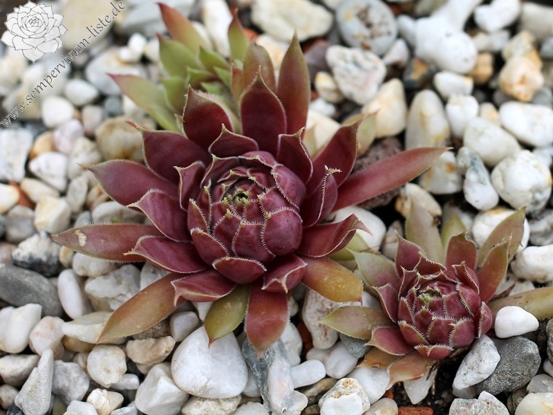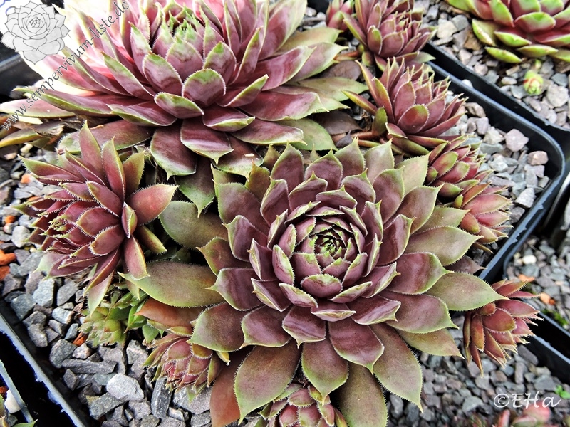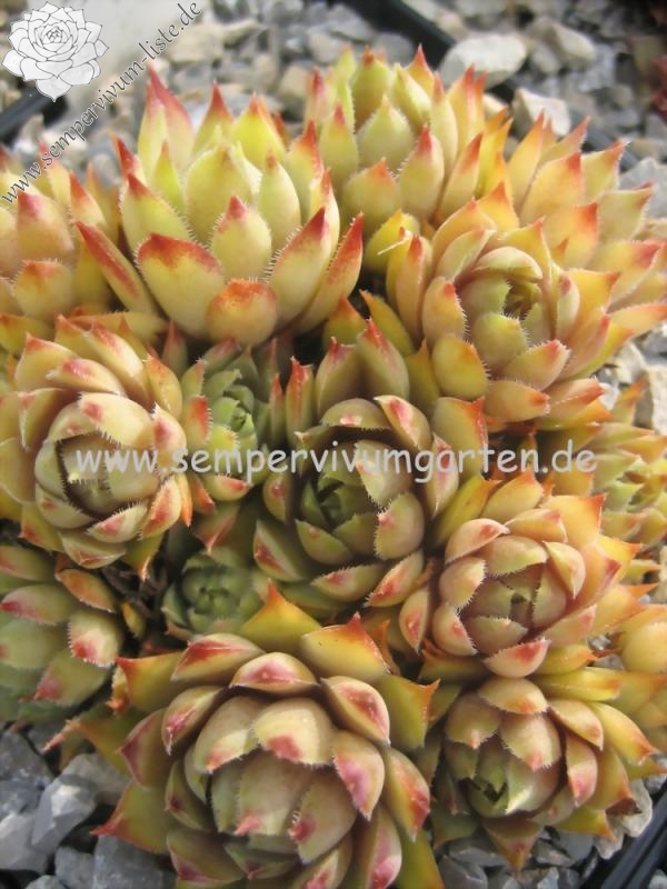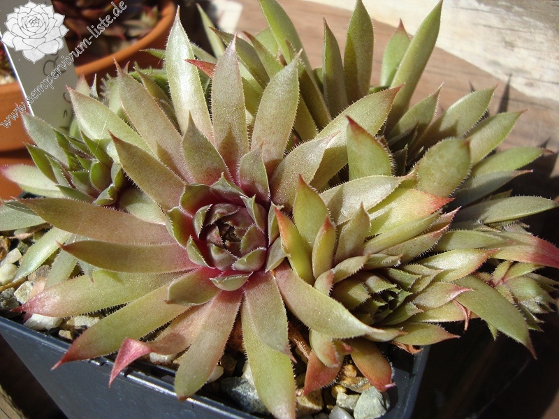 Schöne kleine Rosetten, die ganz dichte, hüglige Polster bilden! Die kühle Färbung wird durch die roten Blattspitzen schön abgerundet.