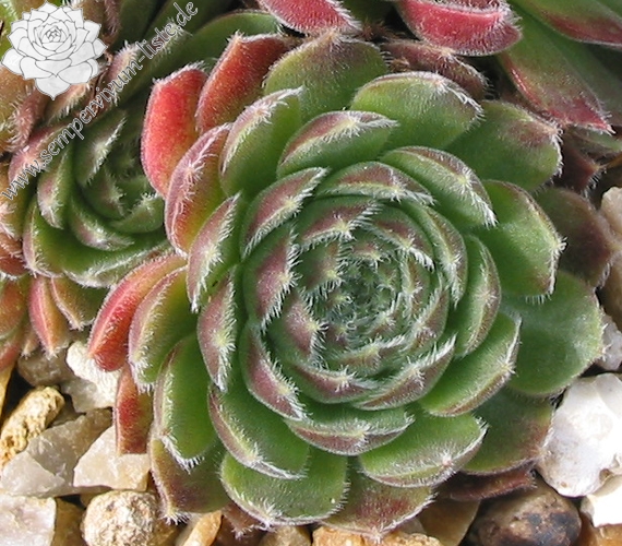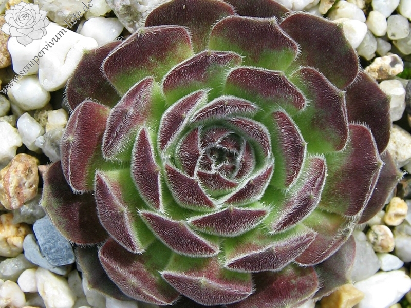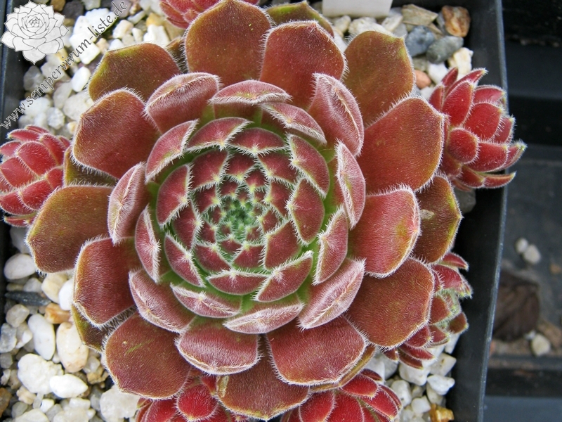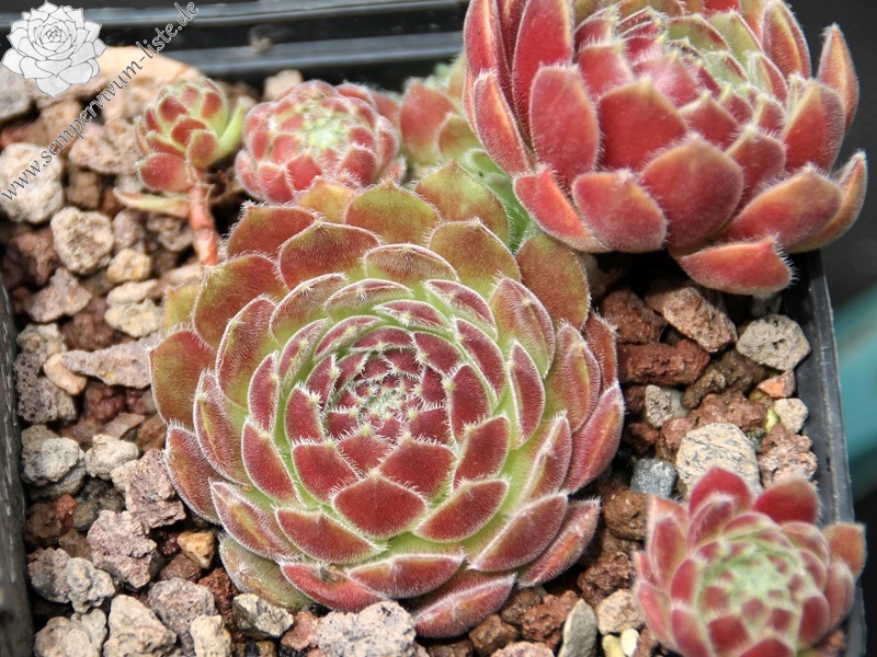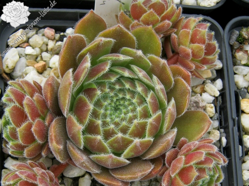 Eine bekannte Sorte aus den 70er Jahren, die aus den USA eingeführt wurde. Das Saatgut vieler Neuzüchtungen der letzen Jahre stammt von dieser Schönheit: 'Eisbär', 'Meelah', 'Moisha', 'Nano' und Klassikern wie 'Ohio Burgundy' oder 'Packardian'. Die Pflanze formt plüschige, apfelgrüne Rosetten mit breiten rötlichen Blattenden, die silbrig schimmern.