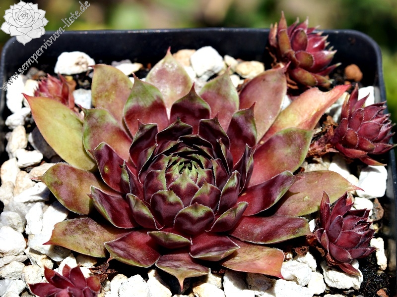 Es scheint als wären zwei Hybriden aus verschiedenen Ländern wieder einmal mit demselben Namen getauft. Wir haben fur Sie jedoch die schönere der beiden vermehrt: attraktive, mittelgroße Rosetten mit violetten Blättern mit graugetönten Blatträndern und -spitzen.