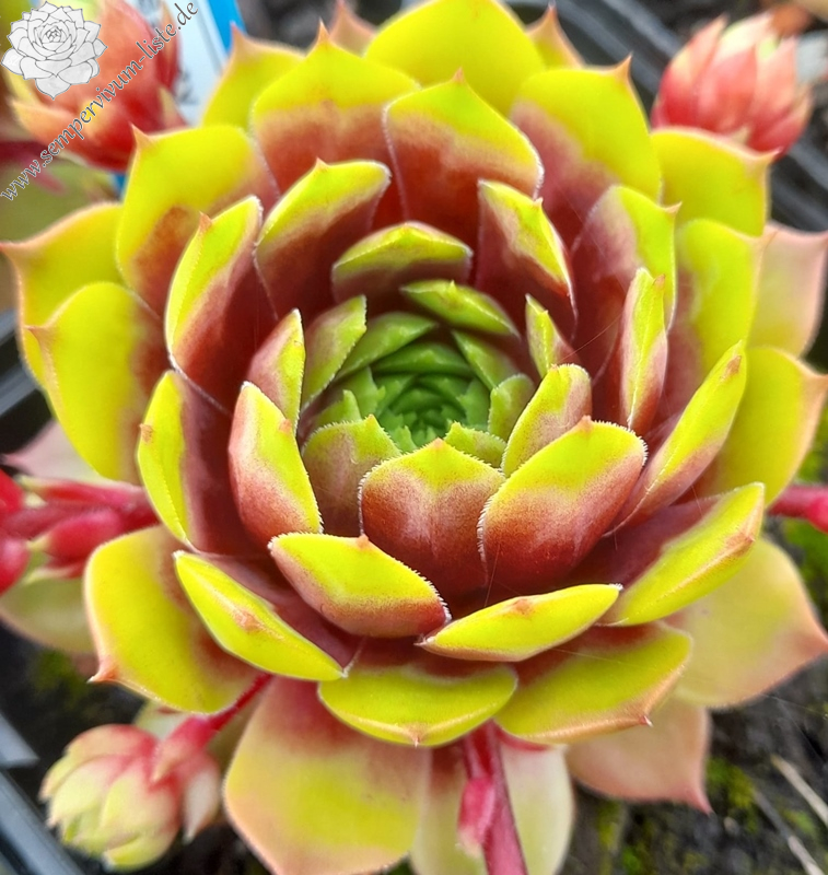 Im Frühjahr (März-April) sind die Pflanzen noch grün und werden immer mehr rot. Im Mai bis August werden sie dann leuchtend gelb, kombiniert mit rosarot im Ansatz. Im Herbst (September bis November) verliert sich die gelbe Farbe wieder und sie wird wieder grün und rot, wobei rot noch dominanter ist. Im Winter verschwindet die rote Farbe und die Rosetten sind nur grün.