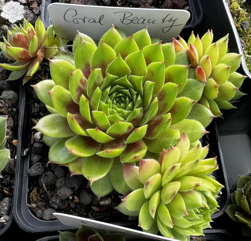 Diese Rosetten haben dicke, sukkulente Blätter. Die Sorte hat einen Durchmesser von 7-8 cm, die Rosetten 3-4 cm. Die Mutterpflanzen kindeln gut, haben oft 5-15 Kindl.