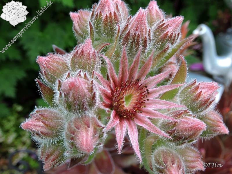 große Rosetten, stark wachsend, bildet viele Rosetten, grün und rot, behaart