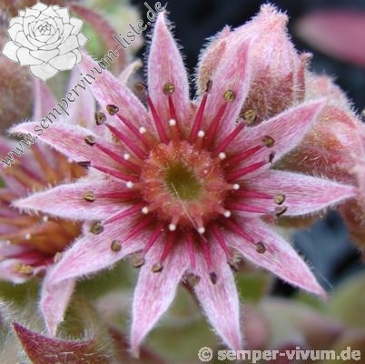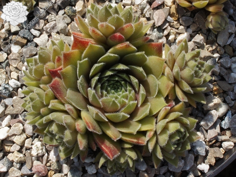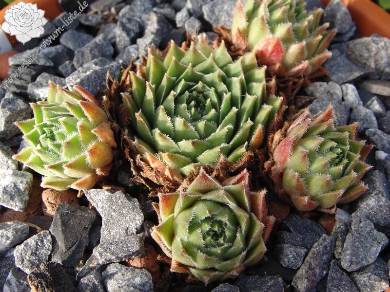 Kleine, relativ spitze Rosetten in olivgrünem Braun mit rosa und violetten Tönen während der Frühjahrsfärbung. Bildet kompakte Polster und ist gut wüchsig.