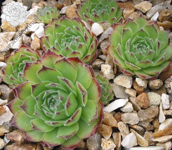 kleine Rosetten, Blatter lanzettlich, lang bespitzt, lindgrün mit dunkleroten Spitzen