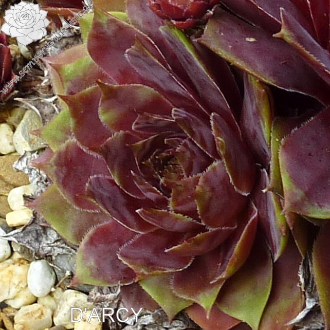 Sempervivum 'D'Arcy' bildet größere Rosetten. Sie sind rosa gefärbt und besitzen hellgrüne Blattränder. Im Sommer ist die Färbung etwas verschwommen - sehr interessant! Die großen Rosetten sprossen gut.