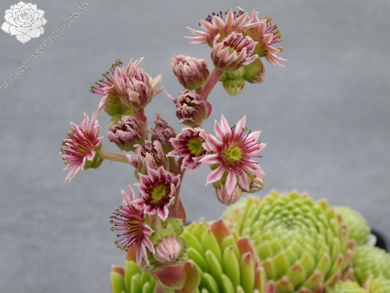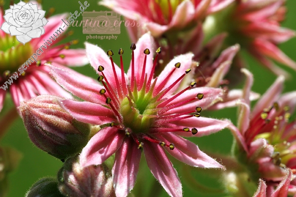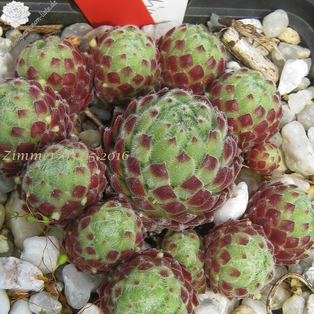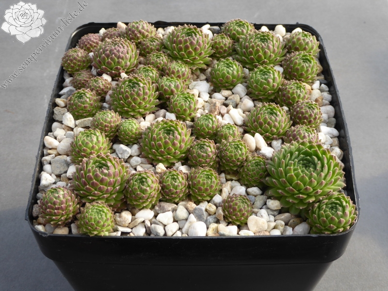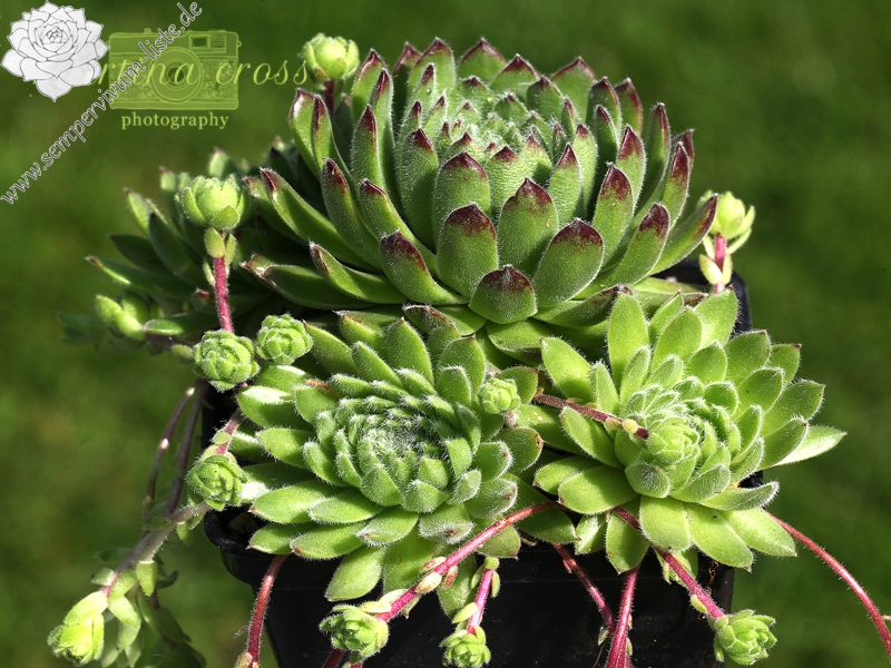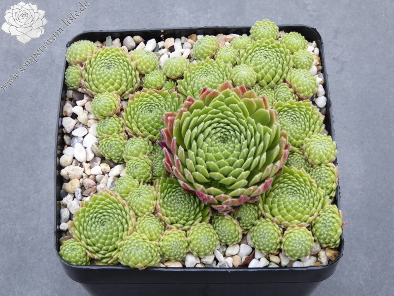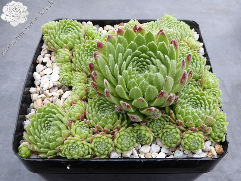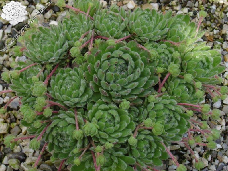 Sempervivum 'Devon Dumpling' ist ein kleiner, süßer Hauswurz. Die Rosetten sprossen willig und besitzen eine leichte, weiße Behaarung. Schön sind die dunkelrot gefärbten Blattspitzen. Ein Liebling vieler Gartenbesucher!