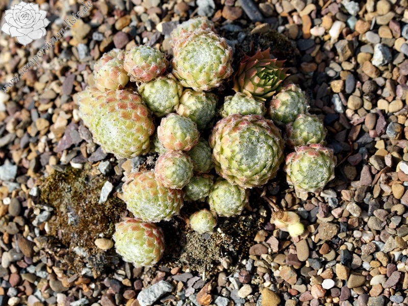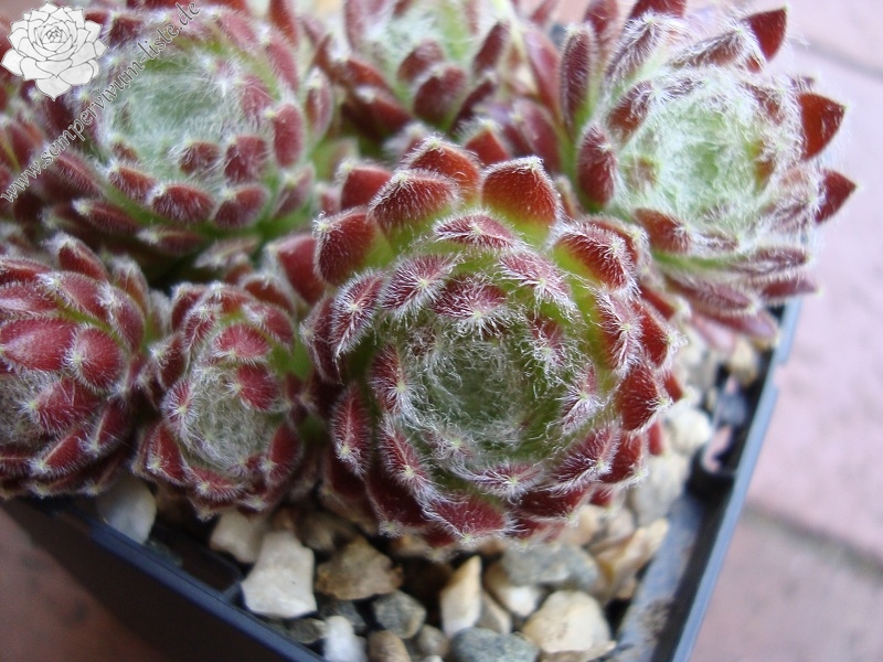 Ein absolutes Muß für jeden Sempervivumsammlung: Besonders attraktive, runde Rosetten, deren Zentrum sich deutlich nach innen wölbt. Die Blattenden besitzen auffallend weißen Haarbüschel wodurch die Pflanzen plüschig wirken - noch dazu sehr wüchisg!