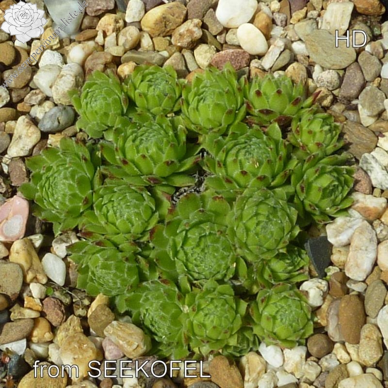 Erwin Geiger: Die Heimat dieser Art erstreckt sich in Italien von den Südost Alpen nach Südtirol und wächst dort auf Dolomit- und Basaltfelsen in etwa 1600 bis 2500 m Höhe. Die fast kugeligen Rosetten haben einen Ø von 1 – 5 cm und formen dichte Polster. Der angebotene Klon stammt aus dem Rufugio Bella. Gefunden bei der Seekofelhütte bei 2300 Höhenmetern. PH1145