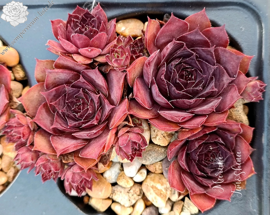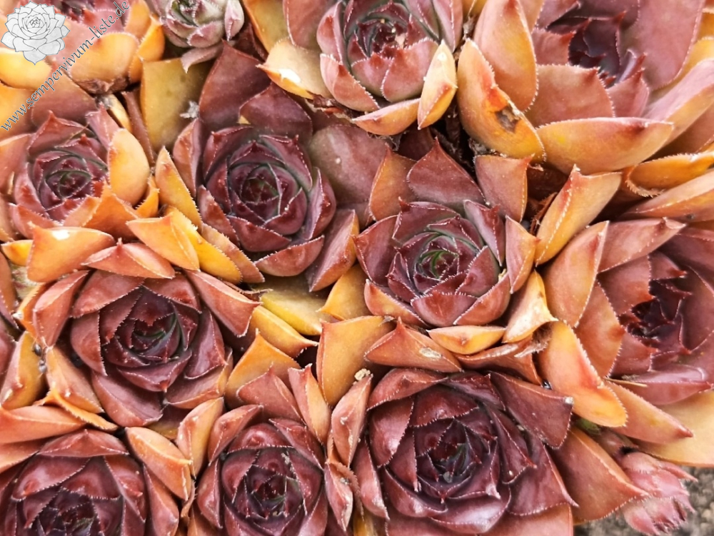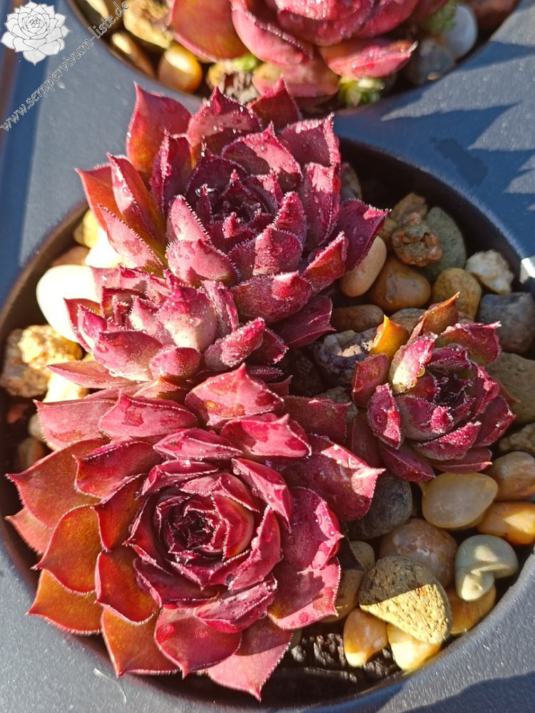 Kleine Rosetten mit verdickten Blättern und anhaltender burgunderroter Farbe.