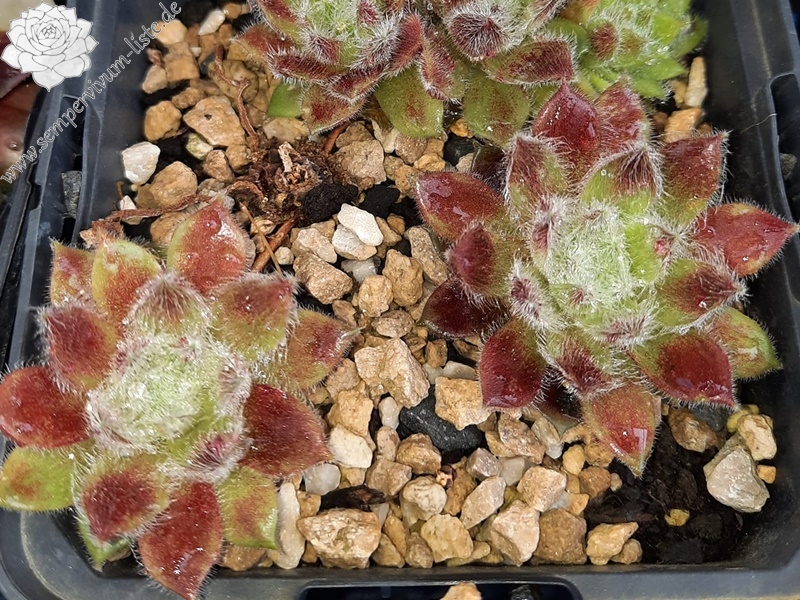 Eine selten zu findende Kreuzung. Die Rosetten zeigen nur wenige Blätter, die leicht weiß bewimpert sind. Etwas Besonderes!