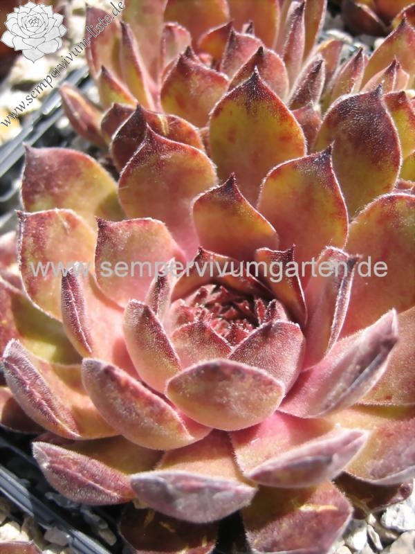 Samtige Rosetten mit einzigartig rosavioletter Färbung mit silbrigem Glanz. Eine der schönsten Züchtungen von Volkmar Schara. Langsam wachsend.