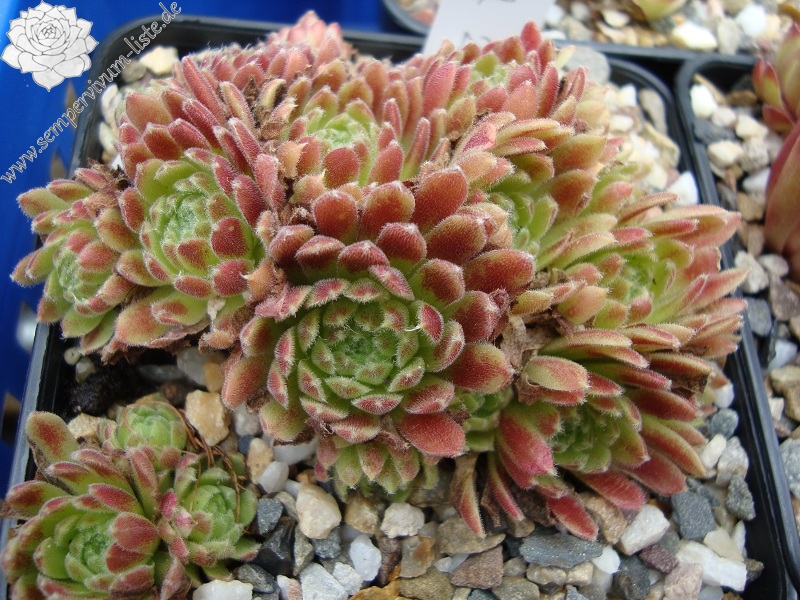 Ein rötlicher Typ, der dichte Polster bildet, aus vielen runden Rosetten. Ein passender Name!