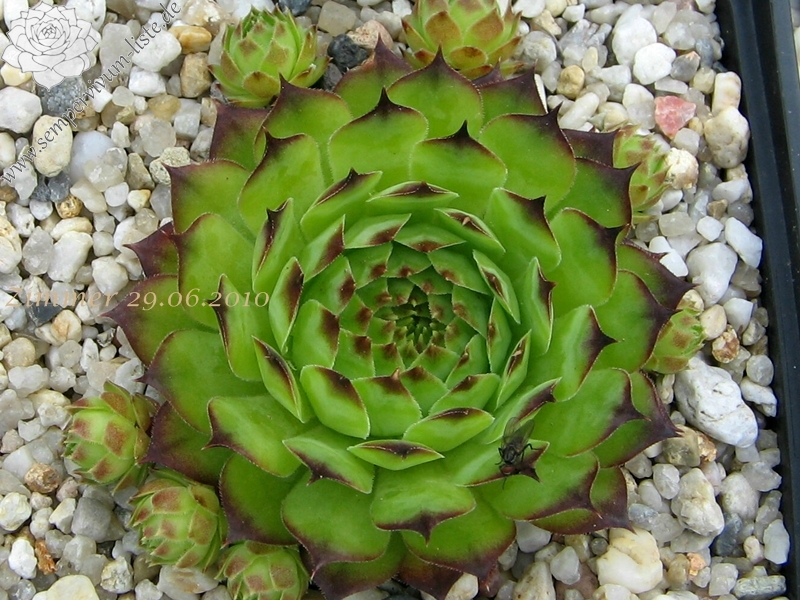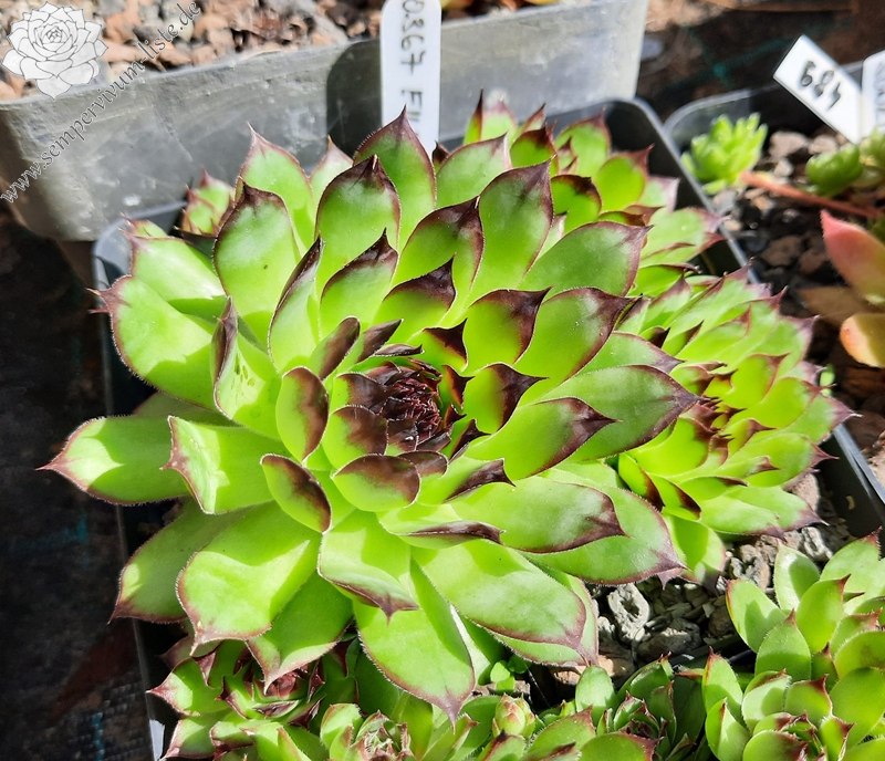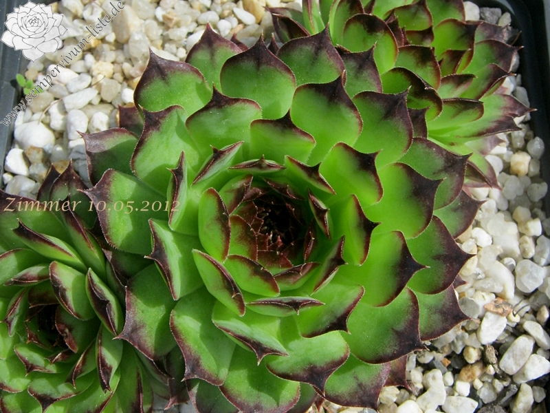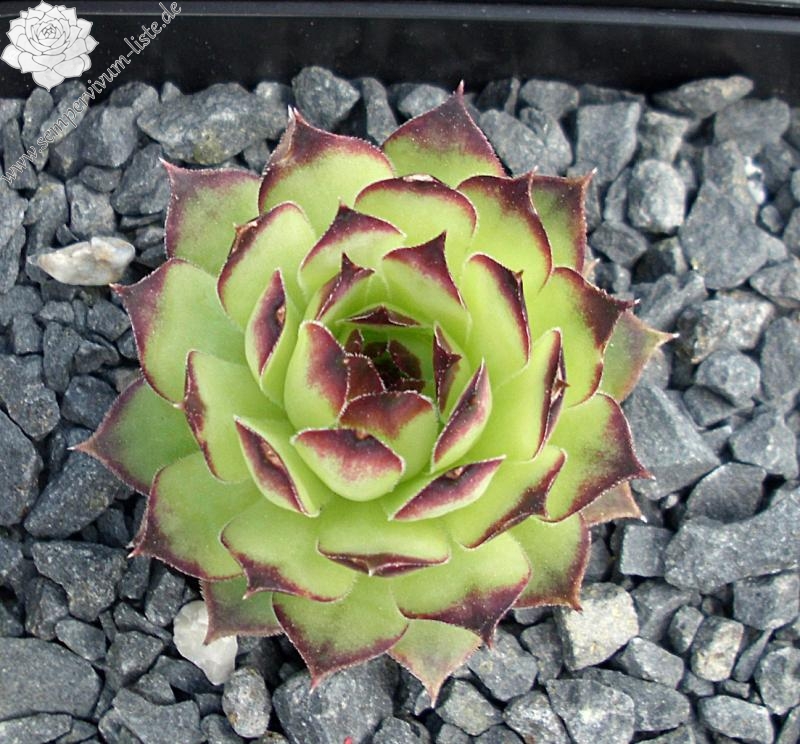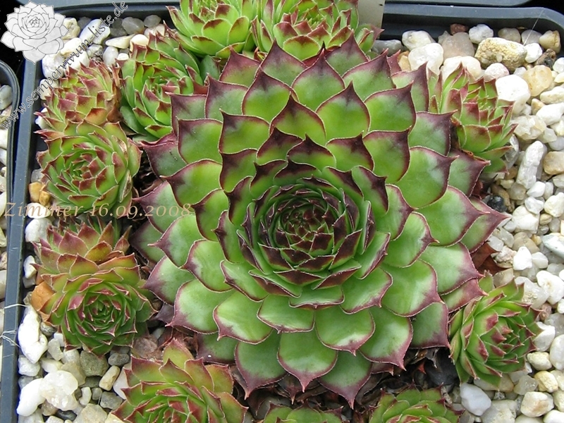 Eine größere Sorte, die perfekte Rosetten bildet. Auffallend sind die kräftig rot gefärbten Blattenden.