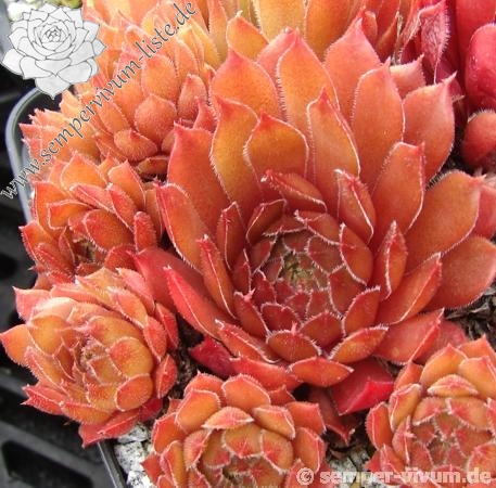 Die Sorte aus den Niederlanden prunkt während der lichtreichen Jahreszeit mit leuchten rot-orangen Rosetten von mittlerer Größe. Der Rand des Laubs ist silbrig bewimpert, wodurch 'Fire and Ice' etwas frostig wirkt: Blattsterne in Feuer und Eis!