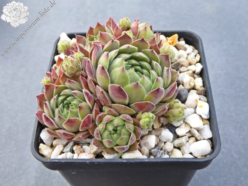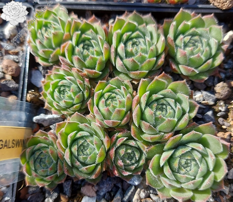 Sempervivum 'Galswintha' ist eine neue Kreuzung von André Smits. Die mittelgroßen Rosetten besitzen eine graue Grundfärbung, mit dunkelroten Blattenden. Die leicht flaumigen Sorten haben mich schon immer fasziniert!
