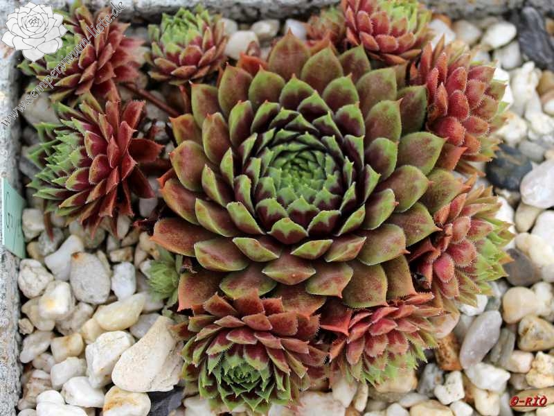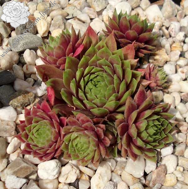 Schöne bunte Rosetten, die dichte Polster bilden. Die grünen Blattenden fallen besonders im Sommer auf.
