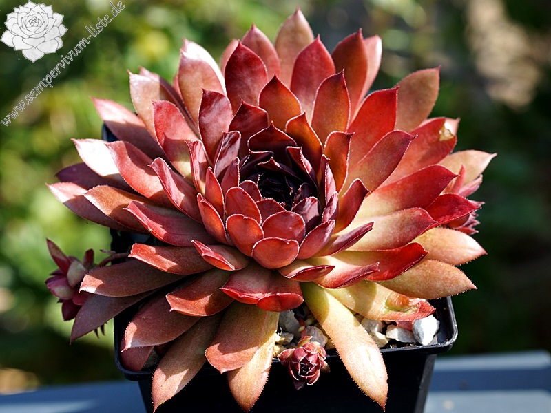 Sempervivum 'Ginger Totty' ist eine rötliche Sorte. Die mittelgroßen Rosetten sprossen willig. Im Sommer zeigt sich ein schönes Wechselspiel von verschiedenen roten Farbtönen.