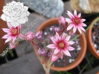 Die mittelgroßen Rosetten sind nur leicht weiß besponnen. Eine wüchsige Sorte!