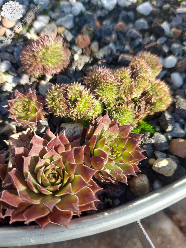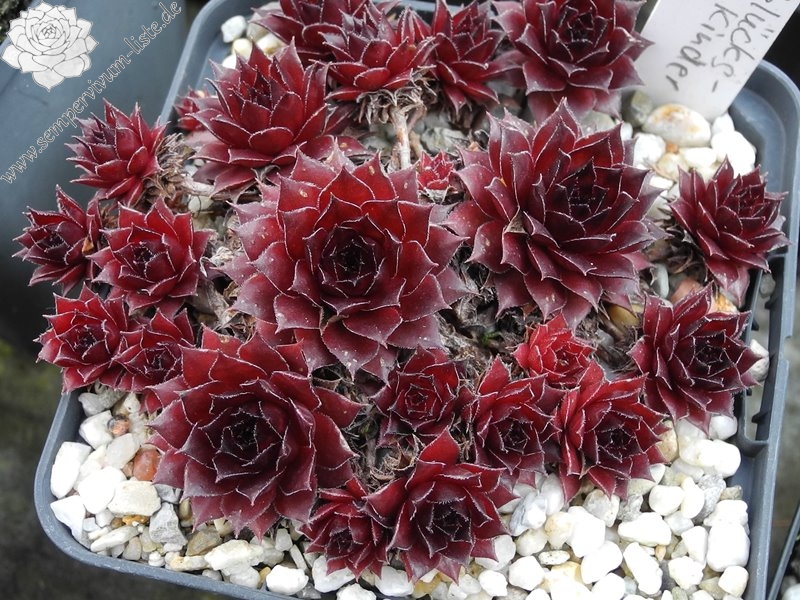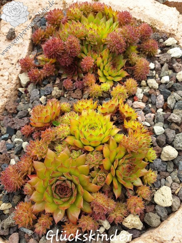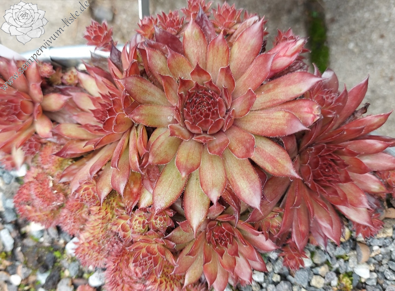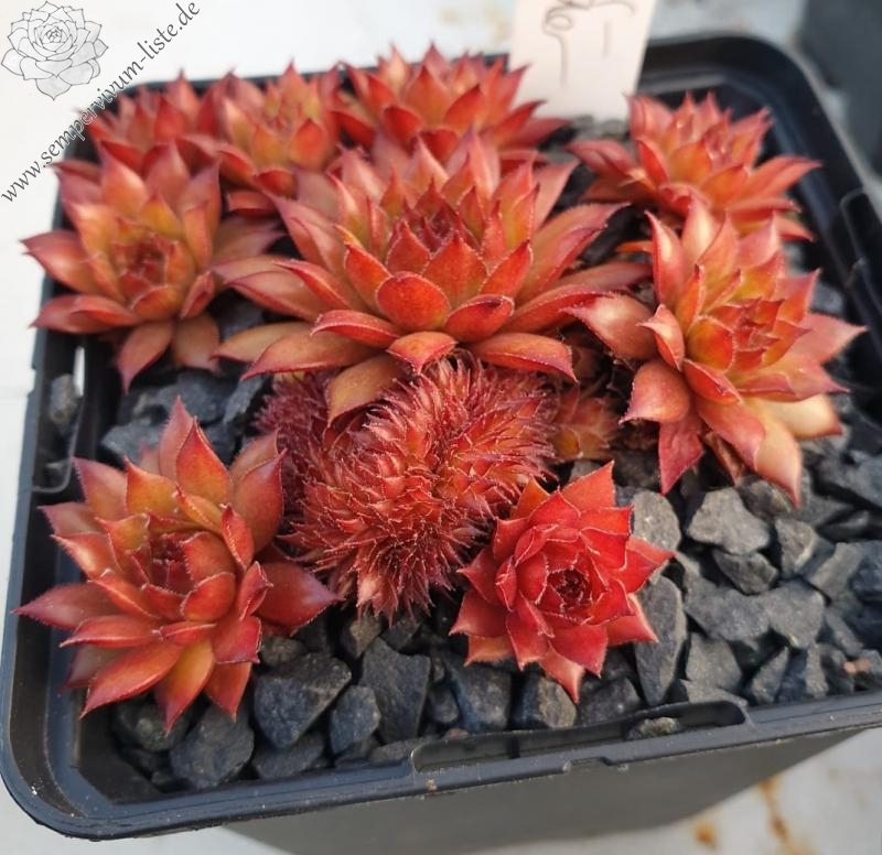 Es ist eine Auslese aus Sämlingen der sehr beliebten Sempervivum Sorte 'Bedivere'. Sie formt kleinere Rosetten in permanenten Farbmischungen von Orange bis Karminrot. Dazwischen bilden sich auch zahlreiche Cristaten.