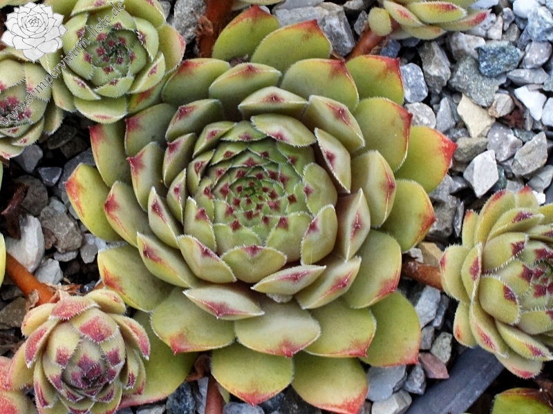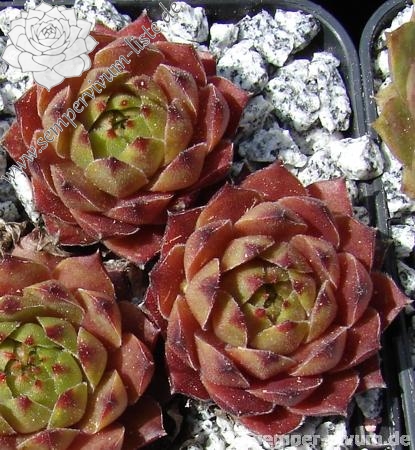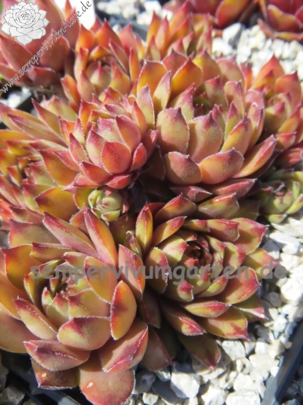 Sempervivum 'Gratiana' ist eine wüchsige Pflanze, die schnell dichte Polster bildet. Die Rosetten sind kugelig geformt und besitzen eine sehr bunte Wirkung.
