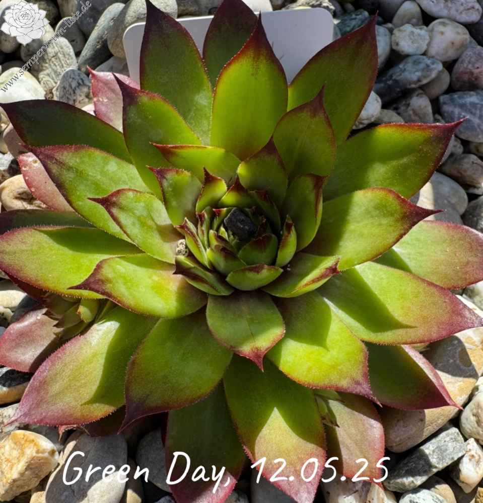 Die Rosetten dieser Sorte haben einen Durchmesser von ca. bis zu 8cm. In der Mitte leuchten sie grün bis gelb und haben einen rötlichen Rand. Im Winter haben sie eher eine grünliche Farbe, werden aber bis in den Sommer hinein gelber. Auffallend ist, dass sie aber immer von innen her leuchten! Im Sommer kann die Züchterin bei ihr kein Verblassen der Farbe feststellen. Bei genügend Sonne bekommen die Rosetten eine tolle Marmorierung.