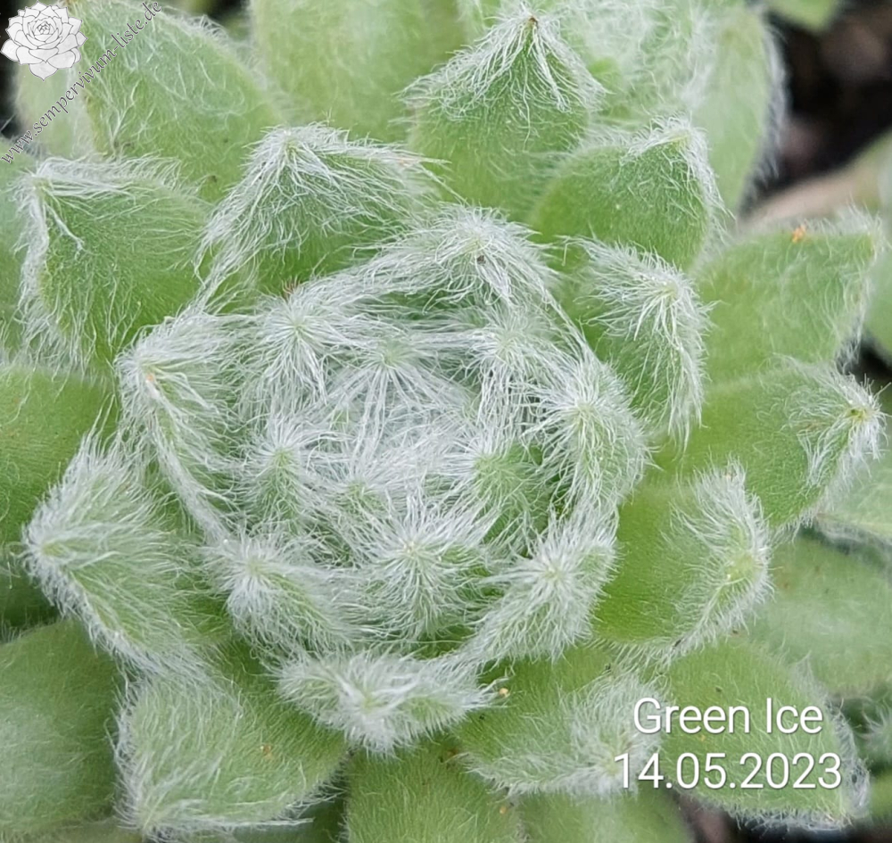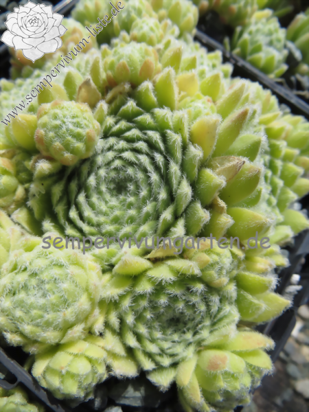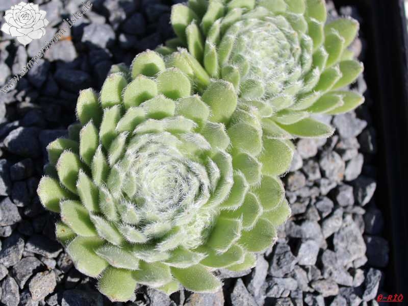 Sempervivum 'Green Ice' zeigt hellgrüne Rosetten, die durch die weiße Behaarung eine sehr kühle Wirkung besitzt. Die Pflanzen sprossen willig und bilden ganz schnell dichte Polster. Einfach schön!