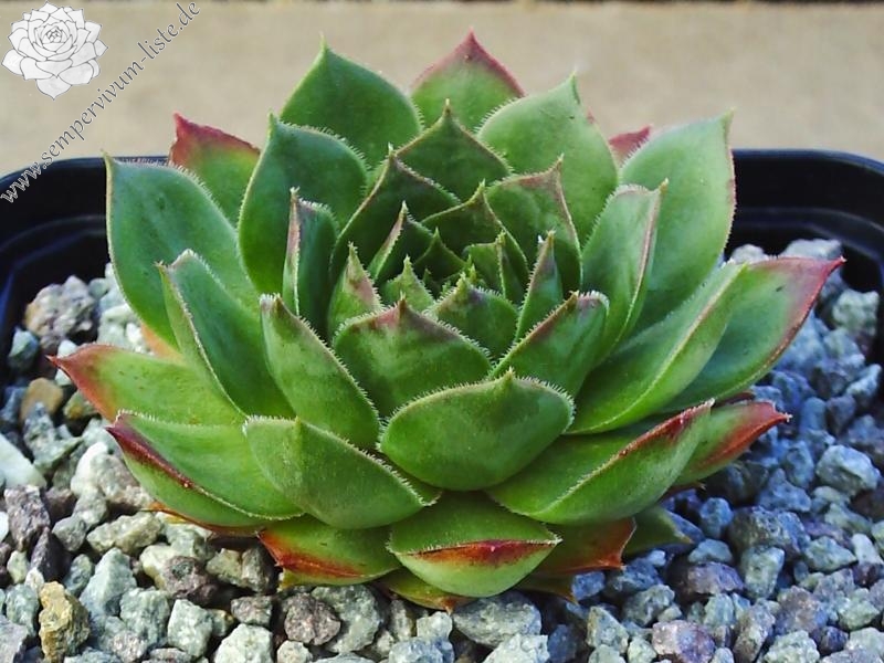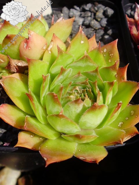 Frischgrüne, offene Rosetten, mit kräftig gefärbten Blattenden. Schöne Rosettenform!