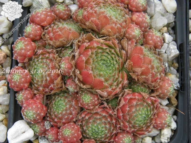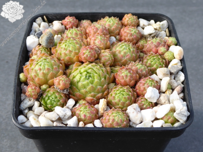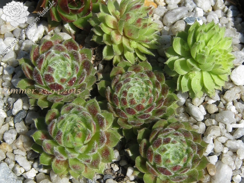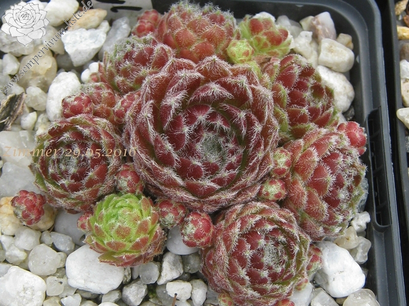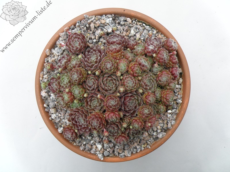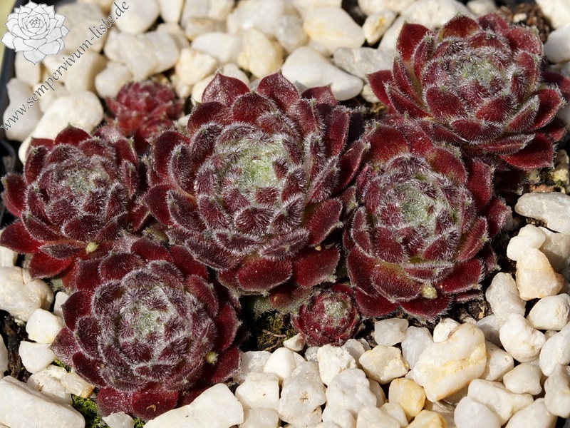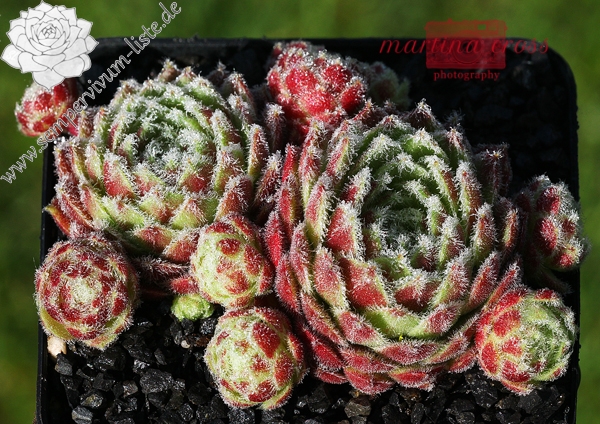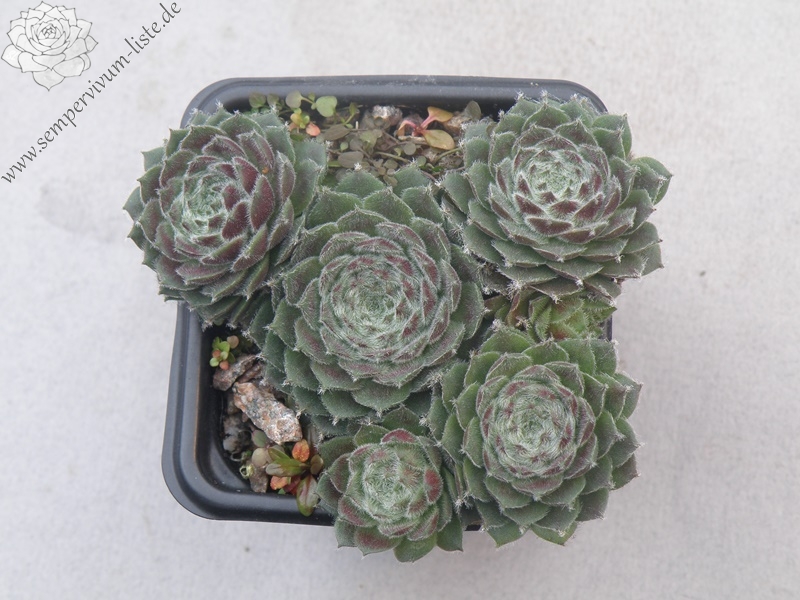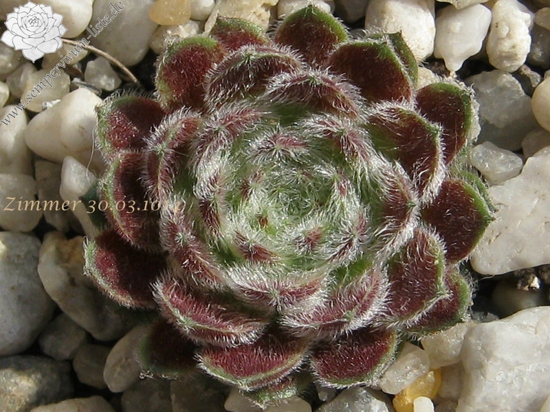 Sempervivum 'Gwenfyl' ist eine kleinere Sorte, die schön behaart ist. Sie besitzt rötliche Blattenden und sprosst willig.