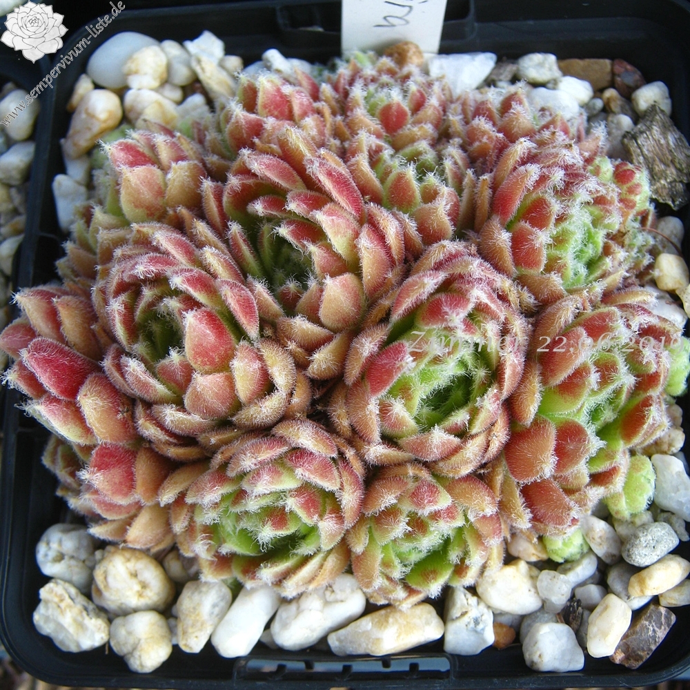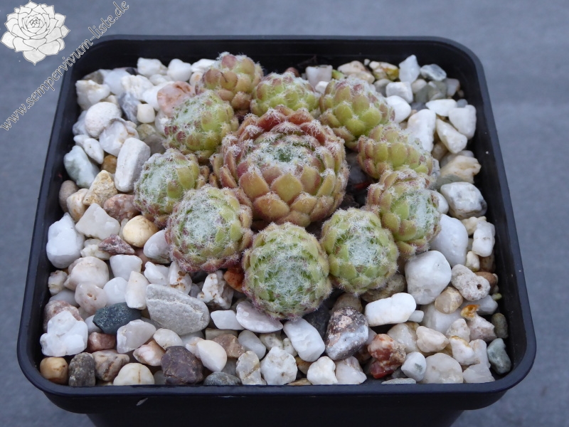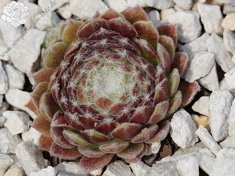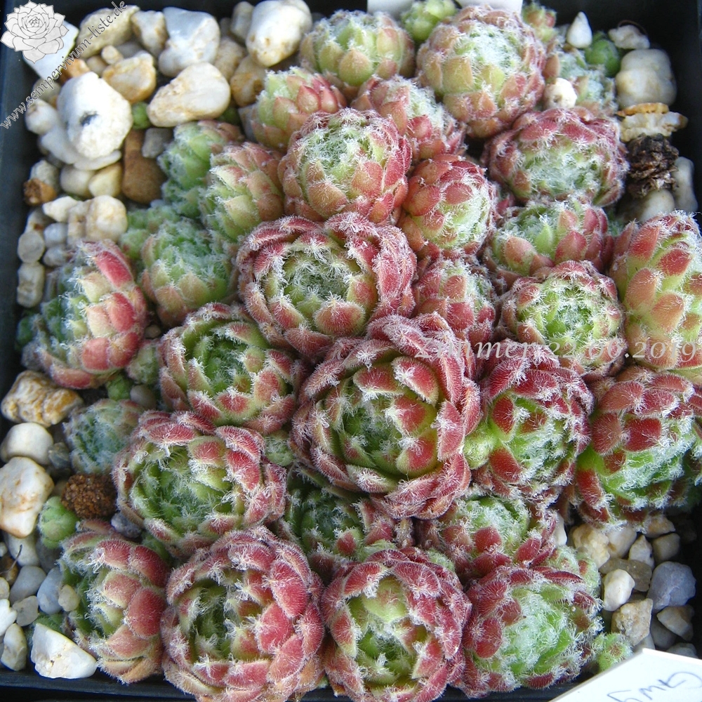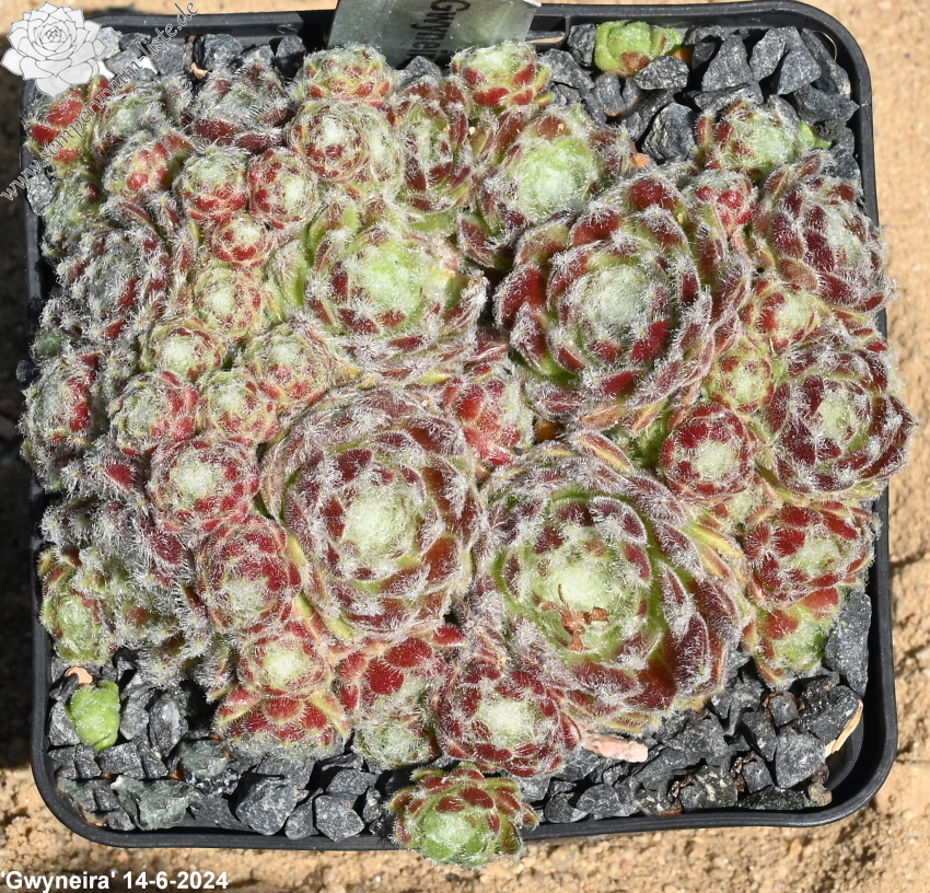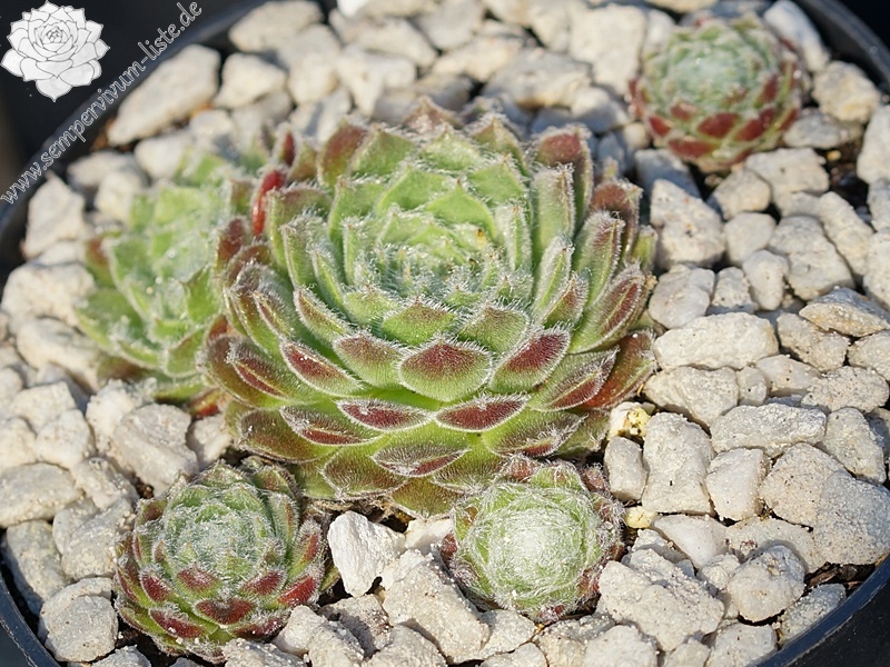 Sempervivum ‚Gwyneira‘ ist ein kleinerer, wüchsiger Typ, der an den Blatträndern stark behaart ist und schnell dichte Polster bildet.