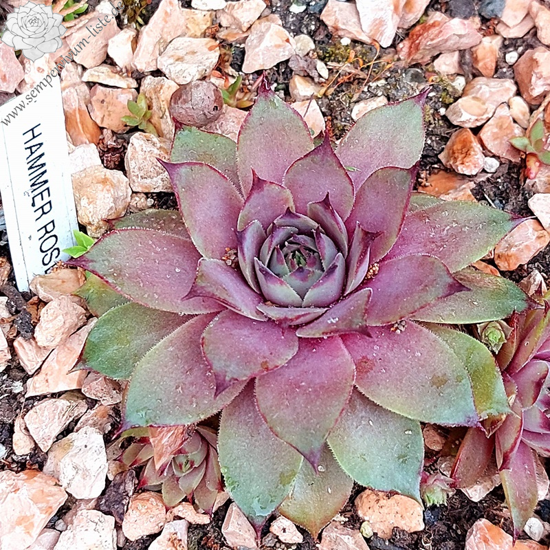 Rosetten bis 8 cm groß, Mischtöne aus gelb rose gelbgrün lila , Blattränder bewimpert, samtige Oberfläche, Ableger an kurzen dicken Stolonen, wüchsig, ein Elternteil 'Ineke', im Namen ist die Stadt Hamm / Westf., zu der der Heimatort des Züchters gehört, eingebettet