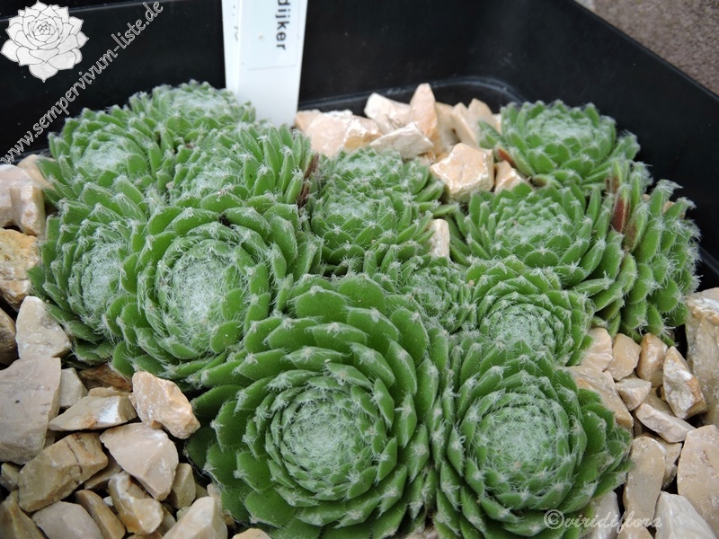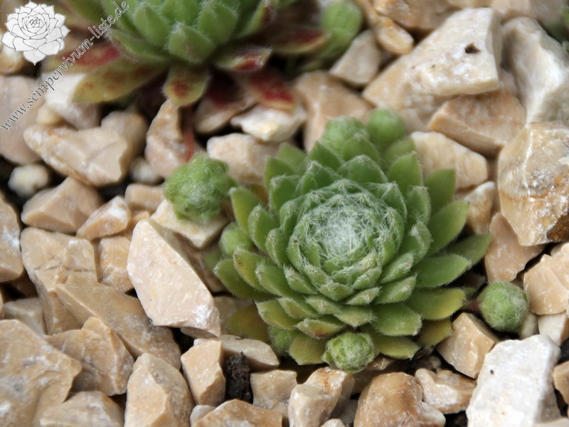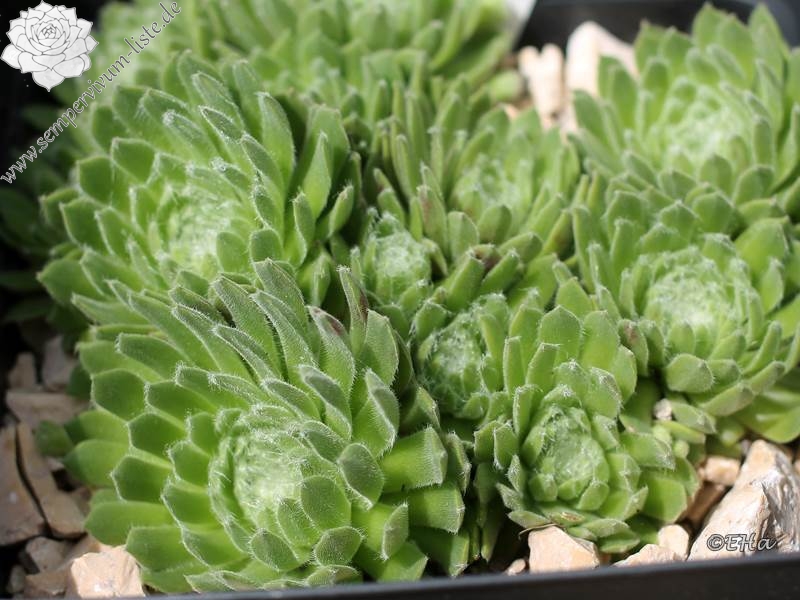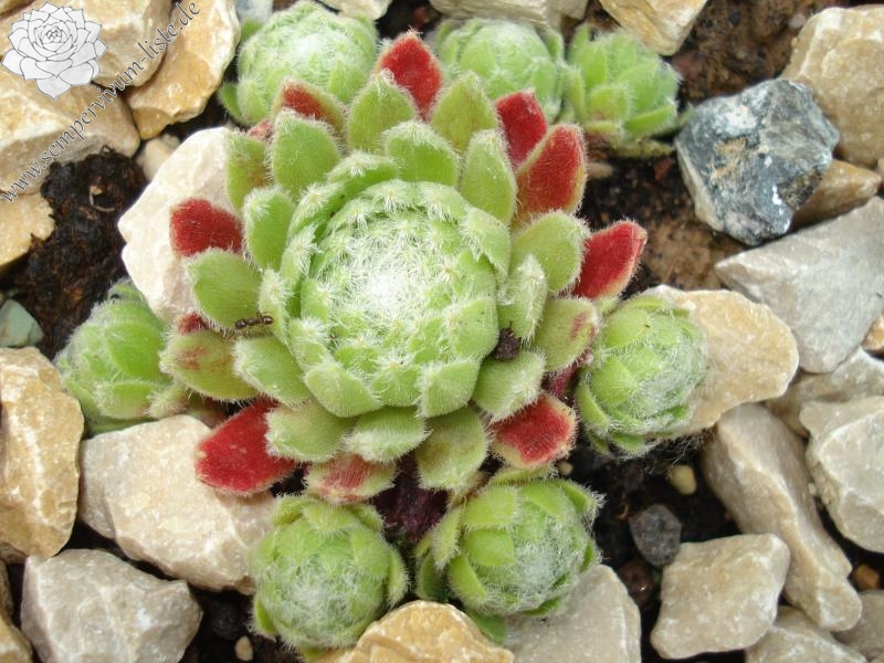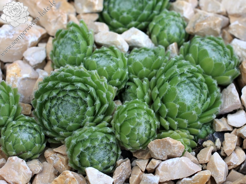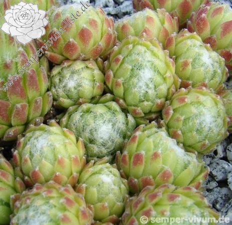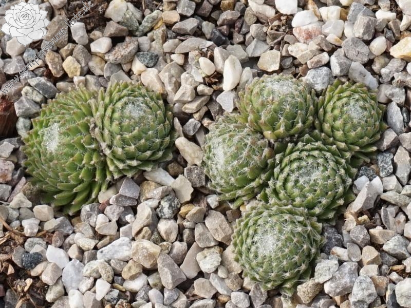 Diese Spinnwebhauswurz formt kleine Rosetten, die kräftig weiß übersponnen sind. Sie sind ganz dicht verwachsen und formen daher schöne, kompakte Polster.