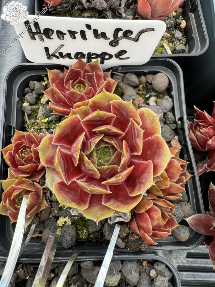 Rosetten bis 10 cm groß, leuchtendes helles Grün, im Zentrum leuchtendes Rot, schnell wachsend, ein Elternteil S. tectorum 'Atroviolaceum', im Namen: Herringen = Heimatgemeinde des Züchters, Knappe bezieht sich auf den hier beheimateten Bergbau ( Knappe = Bergmann)