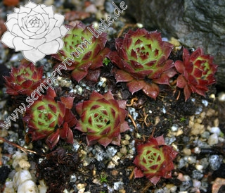 Rosetten bis 3 cm Ø mit langen bräunlichroten Ausläufern. Manchmal sind die Blattspitzen rotbraun gefärbt.