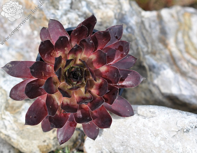 Große schwarze und rote Rosetten mit länglichen Blättern. Im Frühling und Frühsommer sind die Blätter an der Basis hell und sehen aus wie nachgewachsene Wurzeln gefärbter Haare. )) Behält den ganzen Sommer über eine dunkle Farbe.