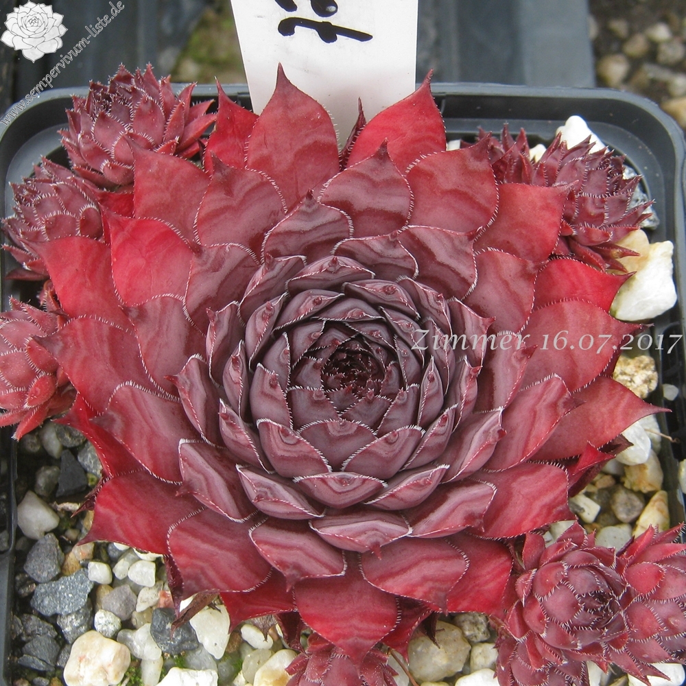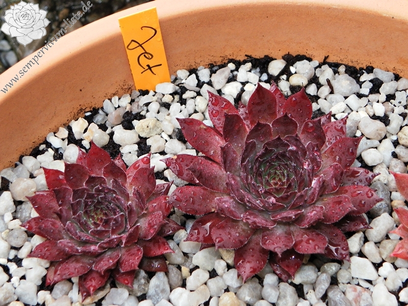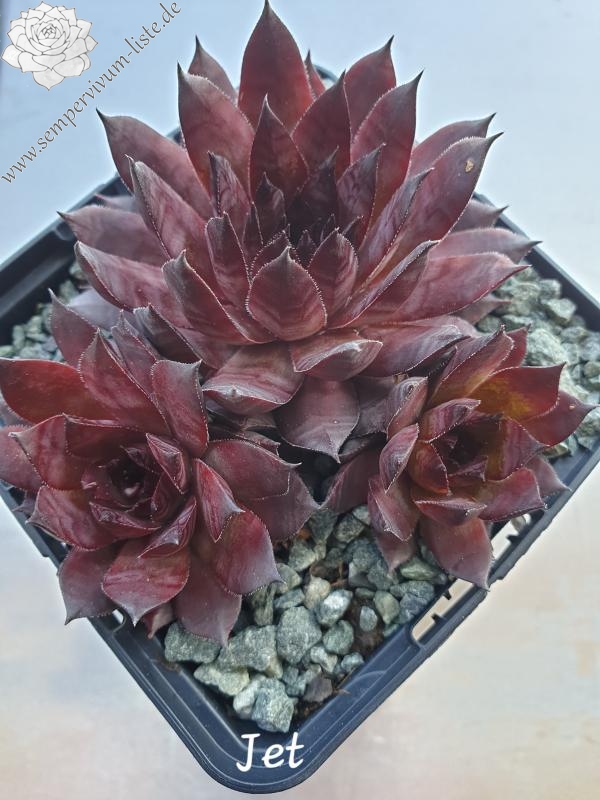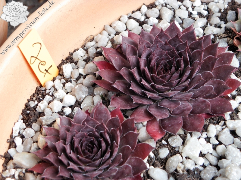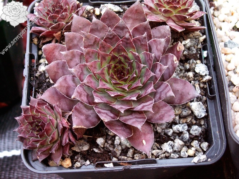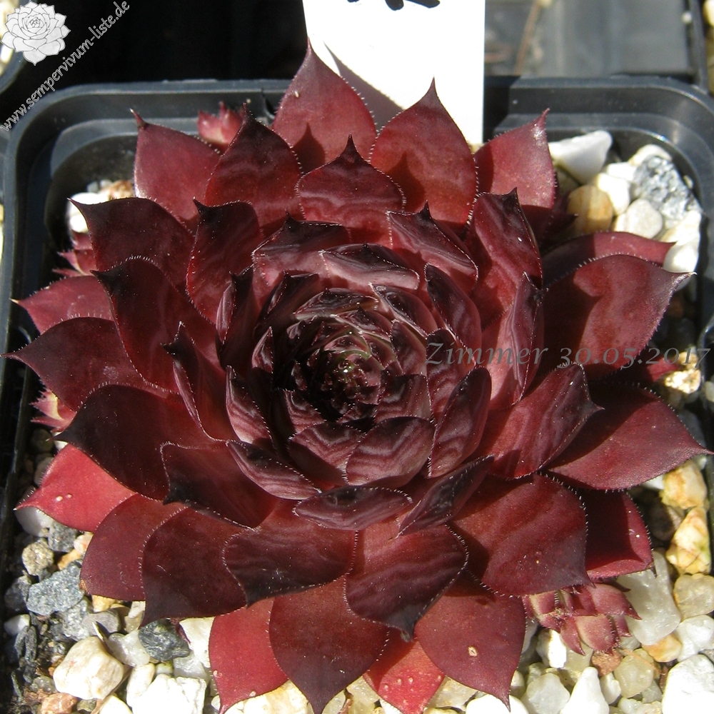 Eine Schönheit mit großen, auffallend schwarzvioletten Rosetten, deren Blätter an vollsonnigen Standorten stark marmoriert sind. Zum Herbst verfärbt sich die Basis graugrün.