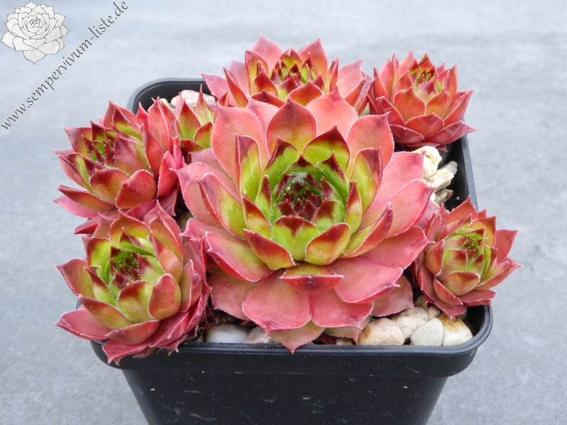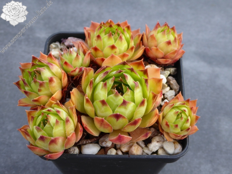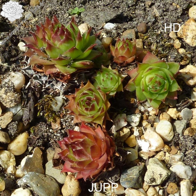 Ein großer Kultivar aus Deutschland. S. 'Jupp' formt recht große, apfel- bis grasgrüne Rosetten. Zum Frühjahr mit orangefarbenen Spitzen!