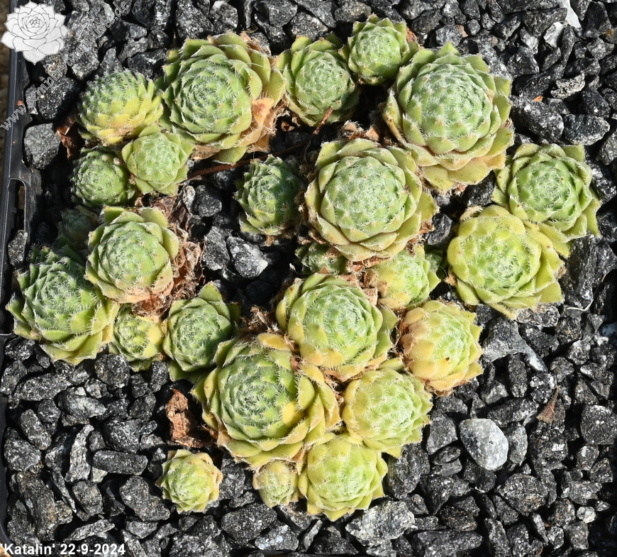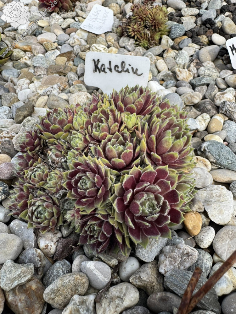 Der wüchsige Schwarzwald Sämling mit seinen 3 cm großen Rosetten besteht aus leicht samtenen Blättern mit weißen Randwimpern. Das anmutige Farbspiel von intensiven Pastelltönen wirkt im Frühjahr durch das helle frische Grün mit dem Rose und dem weißen Samtüberzug der Blätter sehr ansprechend. Im Gegensatz zum aktuellen Trend von großen Rosetten und kräftig leuchtenden Farben, ist 'Katalin' mit ihrer harmonisch ausgewogenen Verfärbung eher etwas für zarte Romantiker. Nicht ohne Grund zählt der Züchter diese neue Sorte zu seinen Lieblingen. Sie erinnert an die bereits prämierte amerikanische Sorte 'Lavender and Old Lace', bei der der kräftige Lavendelfarbton dominiert, jedoch der weiße Samtüberzug gänzlich fehlt.