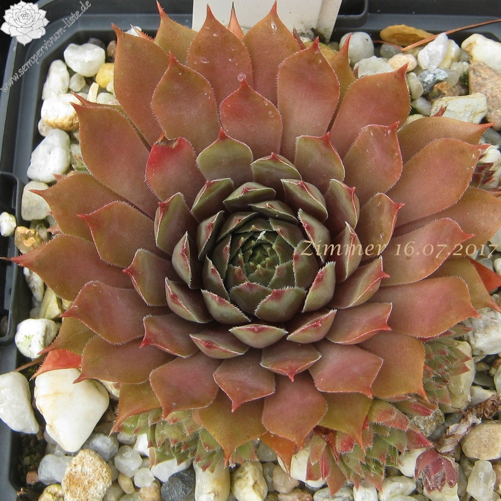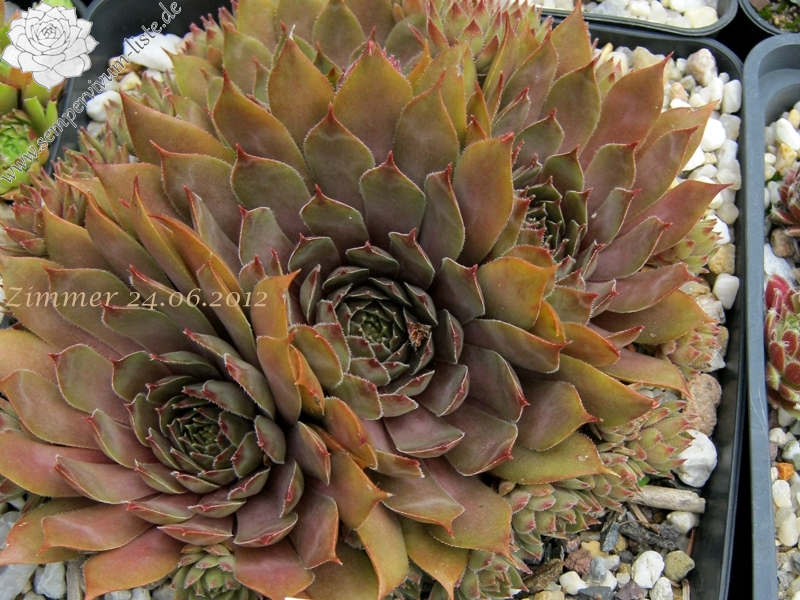 Eine deutsche Sorte aus den 80er Jahren. Mit ihren kleineren Rosetten formt sie dichte, kompakte Polster. Die Färbung reicht von Haselnussbraun bis Olivgrün zu lachsfarbenem Beige. Ein attraktiver Zwerg für jeden Liebhaber.