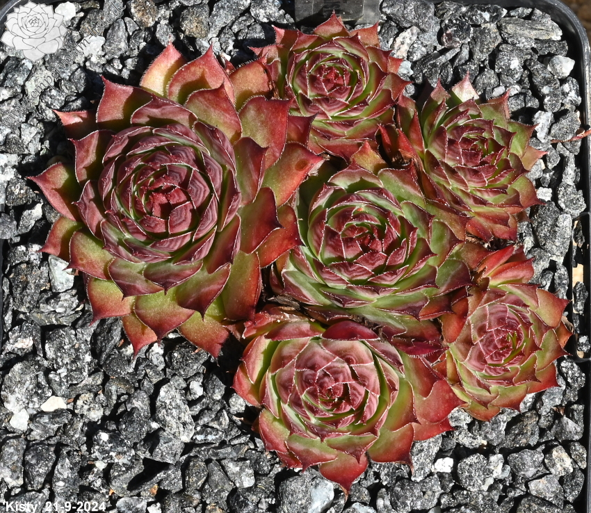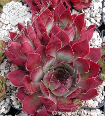 Eine ungewöhnliche Färbung: himbeerrot mit grauem Zentrum. Die Blätter sind scharf gespitzt.