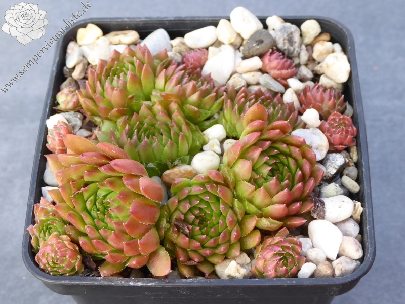 Rosetten bis 6 cm, Blätter breit linealisch, kurz bespitzt, Herz und Blattspitzen melonengelb, Rest blutorange