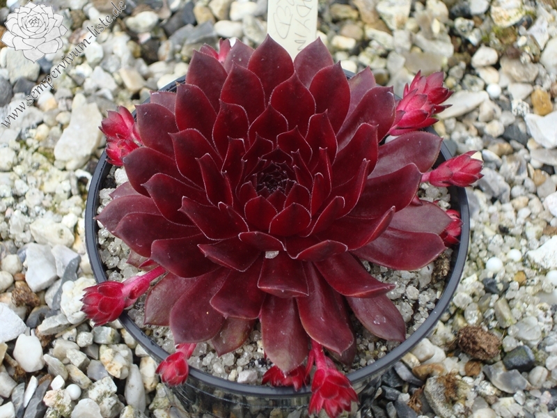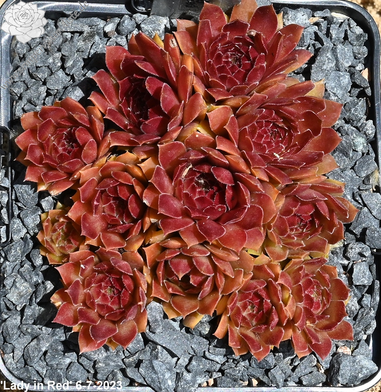 Eine attraktive Sorte aus Großbritannien mit kleineren Rosetten in leuchtend roter Frühjahrsfarbe. Auch zum Sommer auffallend durch orangerote Töne, dazu sehr kompakt wachsend.