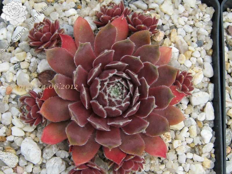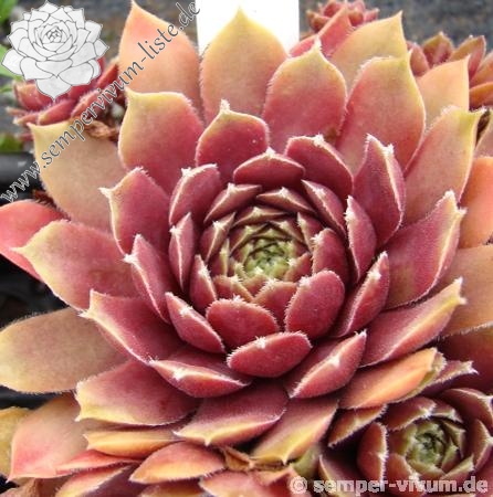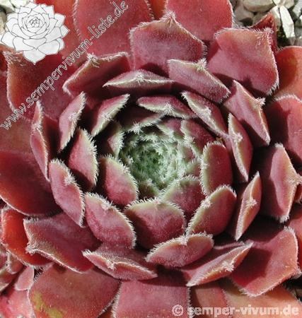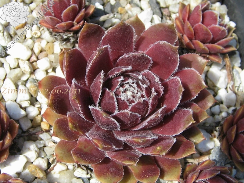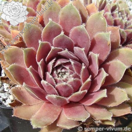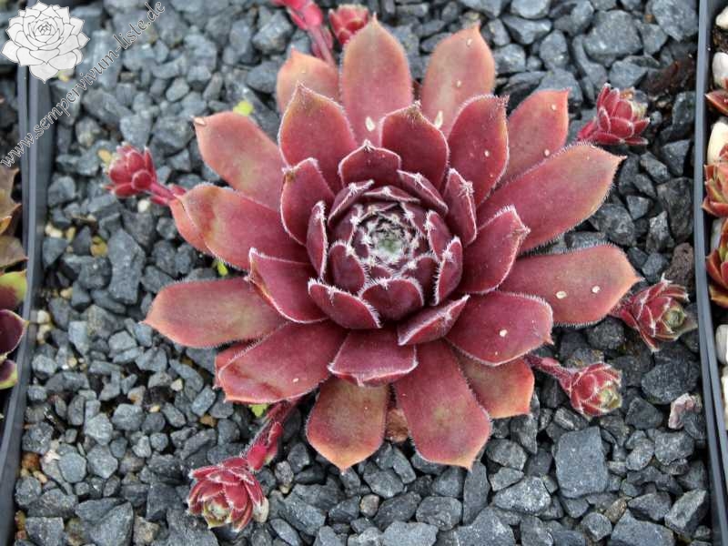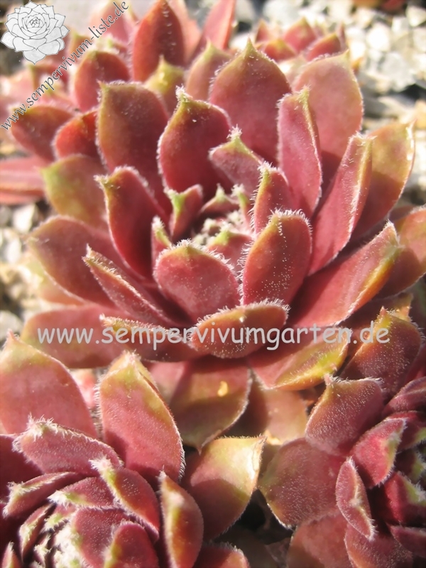 mittelgroße Rosetten, grau in lila übergehend, mit haarigen Kanten und Haarbüscheln an der Spitze