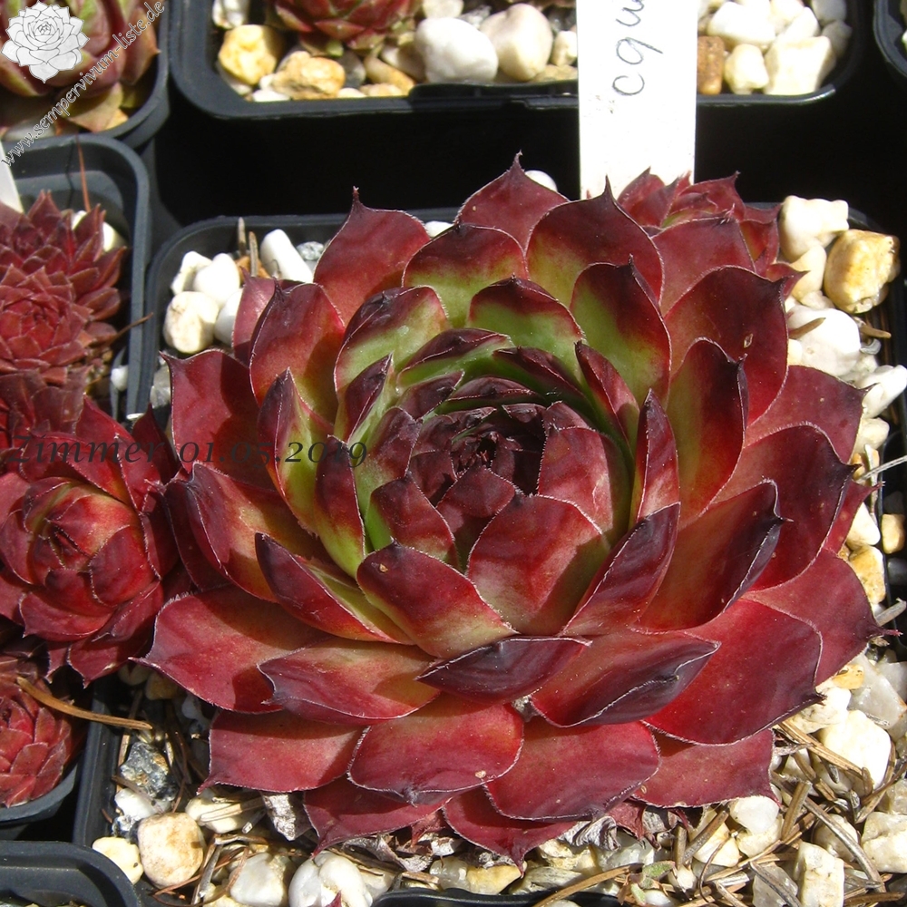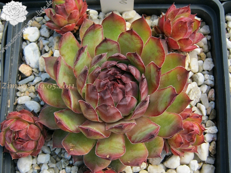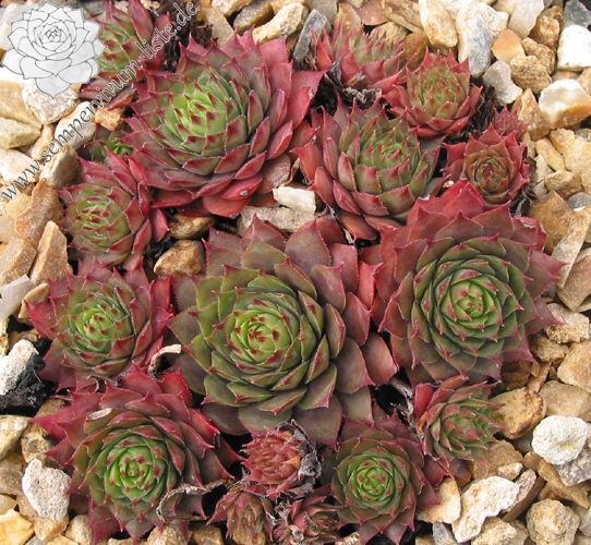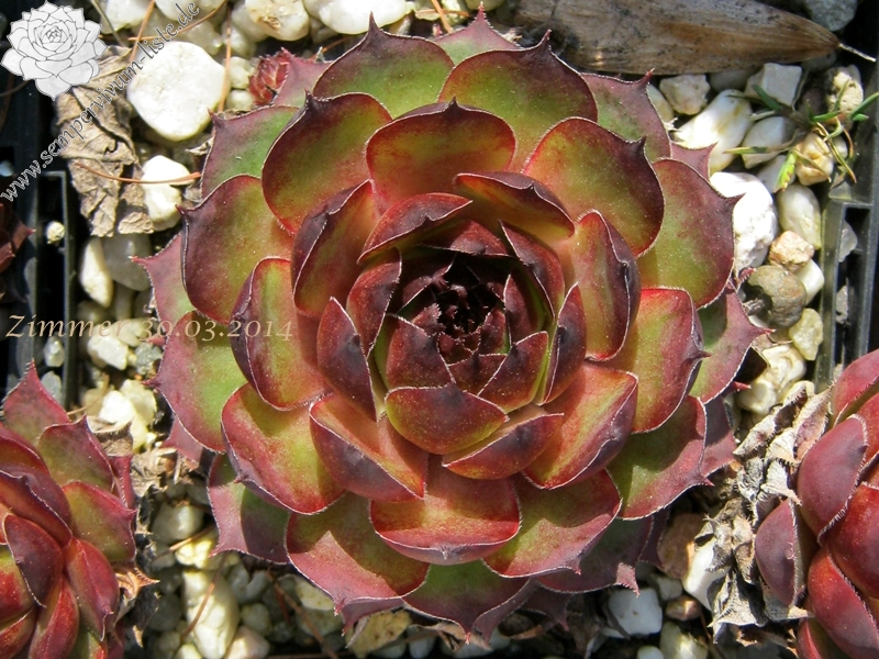 Rosetten 12 cm, breit, blaugrün, violette Spitzen, Bl. blassrosa.