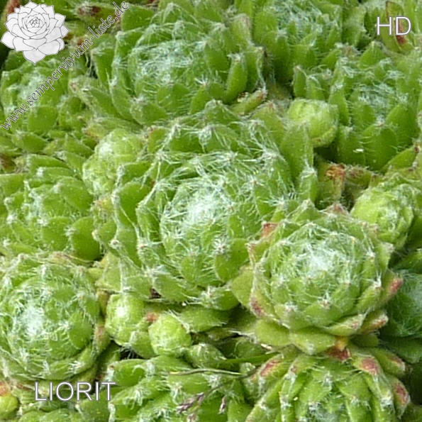 Eine neuere Hybride aus Belgien mit leuchtend grünen, weiß überwebten Rosetten, die im Verhältnis für eine Spinnwebhauswurz Züchtung etwas größer werden. S. 'Liorit' ist gut wüchsig und formt kompakte Polster. Die Blüten besitzen auffallend breite Petalen (Blütenblätter) in Rosarot.