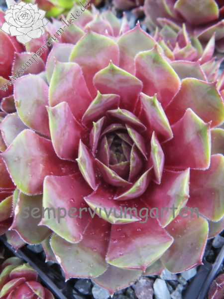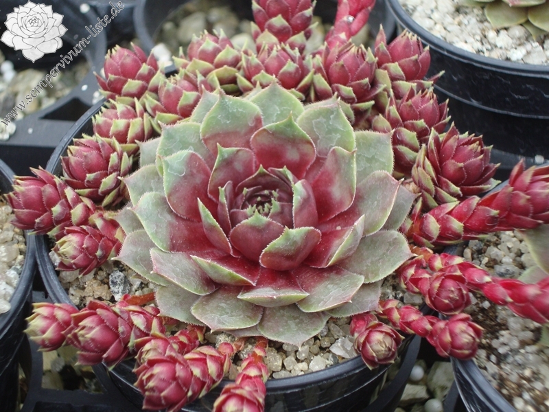 Sempervivum 'Little Pink Rosebud' ist ein im Zentrum kräftig gefärbter Hauswurz. Der Rosettendurchmesser liegt bei 9cm und ist nicht gerade klein, wie man es aus dem Namen entnehmen könnte! Vielleicht sind auch die vielen pinken Ableger gemeint, die willig gebildet werden. Eine wüchsige Pflanze, die schnell dichte Polster bildet.