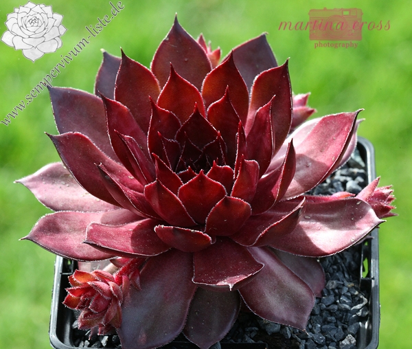 Sempervivum ‘Maple Syrup’ besitzt mittelgroße Rosetten und sprosst gut. Die Farben leuchten den ganzen Sommer über und sind wirklich einmalig schön.